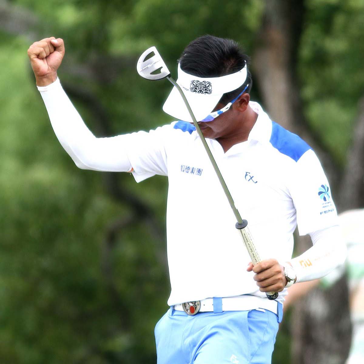 | 勝利的一刻!台灣選手林文堂雖然在最後一回合第18洞打出柏忌,但前三回合一路已將比數拉開至七桿之多,所以仍然順利贏得本屆桂冠。 |