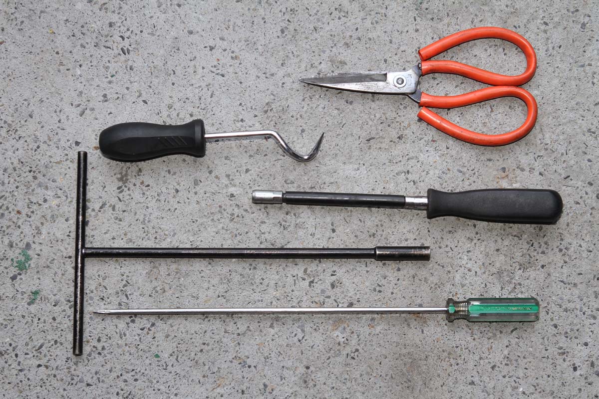 使用工具:一字起子、剪刀、8號螺絲套筒、鐵束環螺絲扳手、水管分離器。