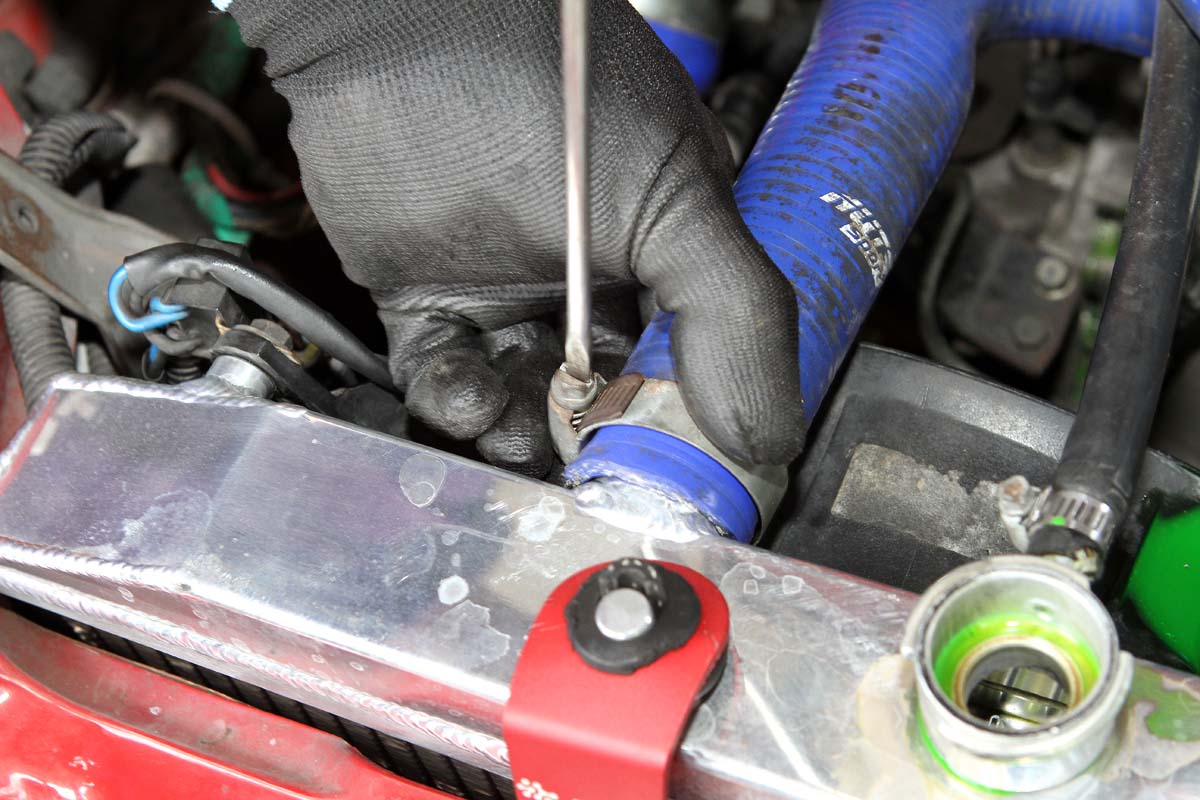 而更換過程中需要注意的事項主要有兩個,其一是需等待水箱水冷卻到室溫下再進行,以防止高溫水箱水噴灑到人體而燙傷,其二則是換完水管加滿水箱水後的管內空氣排除要徹底,並確保節溫器能打開進行大循環後才能上路行駛,以避免引擎縮缸損壞。前者的難度較低,只要等水溫冷卻後再施工就沒問題,後者會因為車型不同的關係會有些複雜,不過只要把握一個大原則就可以,那就是水箱蓋需等到引擎運轉到下水管摸起來是熱的,且散熱風扇進行啟動與停止兩個階段,並加滿水箱水後才可關閉水箱蓋,如此就不用擔心水道內會殘存空氣,影響風扇與節溫器的作動,如果還是不放心,隔天早上再打開水箱蓋檢查水位,缺水補滿水即可。