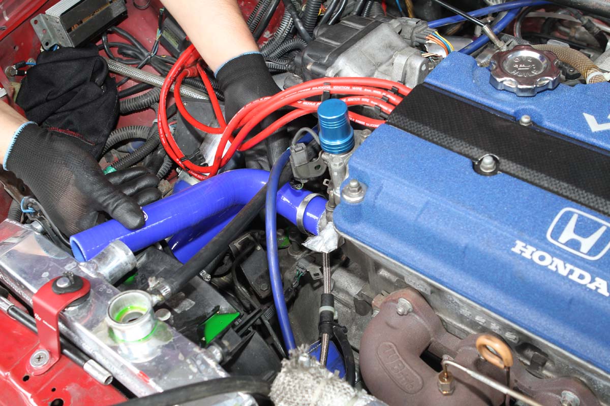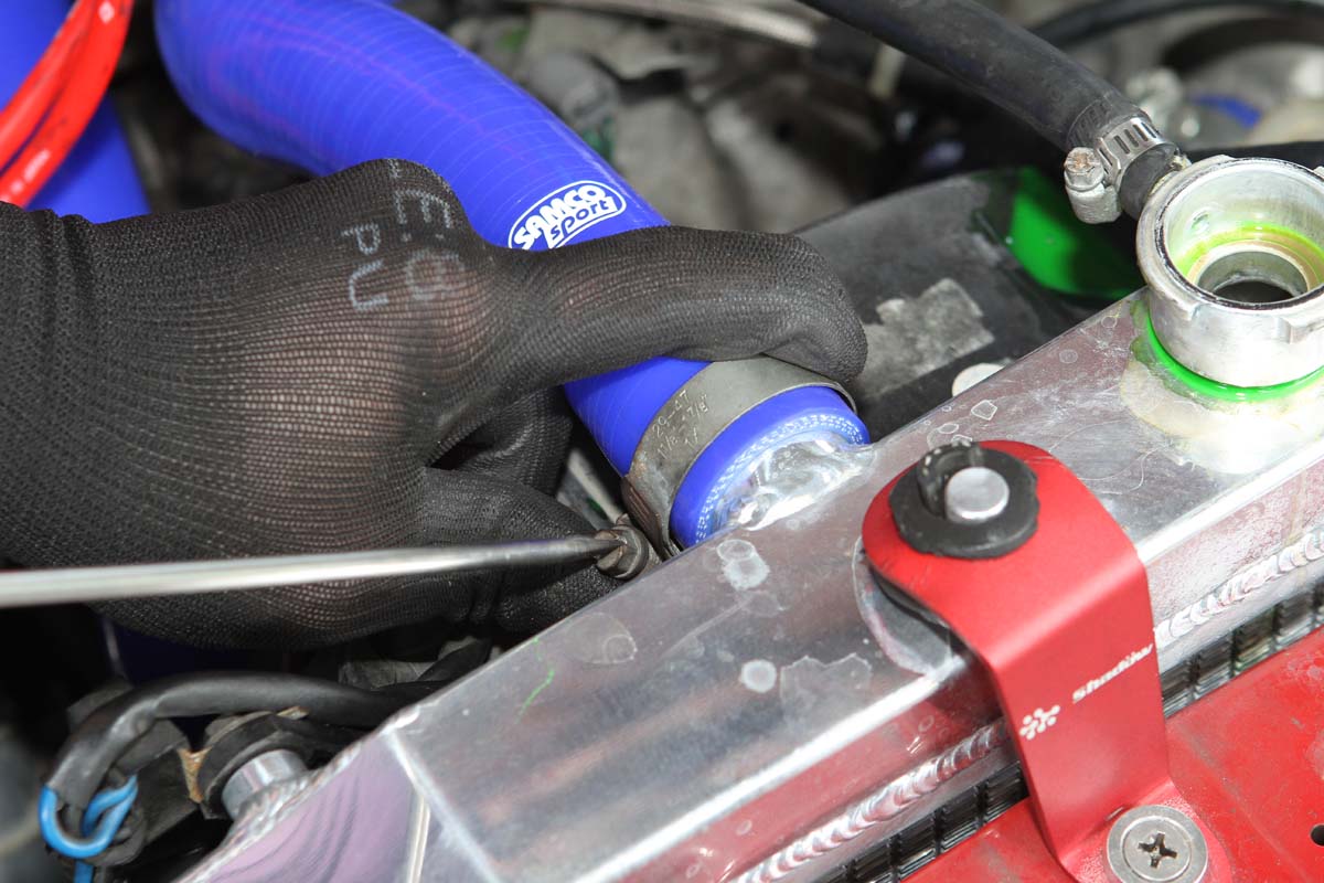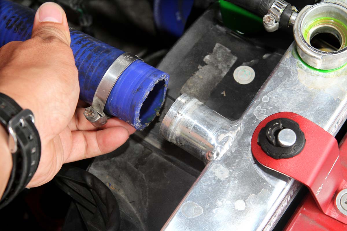 首先要為大家介紹的DIY冷卻項目,是水箱上下水管的換裝,筆者有鑒於愛車的上下水管使用已有7年以上時間,按壓起來略感硬化沒有新品般的彈性,加上下水管的入水口處出現些微滲漏水箱精的情況,因此最後決定將上下水管換新品,以徹底解決上述問題,而既然決定要換新水管,挑選的產品自然以強度較佳矽膠強化部品為首選,目前這類的產品價格已降低到一般車主可接受的範圍,大約3000多元就可入手,不用擔心換個水管就沒有零用錢可用。