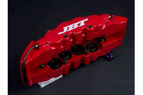 JBT Brake System型號CB8P,可對應19吋/20吋380mm(盤厚34mm)弧型通風道劃線兩片式全浮動碟,或者加價選購全浮動式全打孔兩片弧形通風道競技打孔碟,有賽車紅/全電鍍(加價選購品)兩色系。