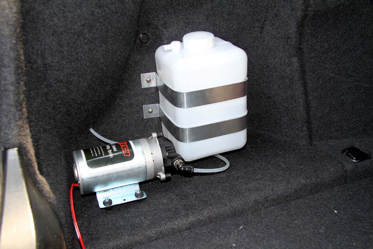 水噴射系統安裝難度通常不高,高壓泵浦與儲水桶多半都固定在行李廂內,再藉由管路將水導引至引擎室內,並與鎖在進氣管路上的噴嘴連接後,即可完成管路的配置。至於負責管理啟動時機的控制器,如果有改裝電腦可對應則不需額外安裝,要不然就需另外加裝「歧管壓力控制器」或「轉速控制器」,來負責控制水噴射啟動與關閉的時機。