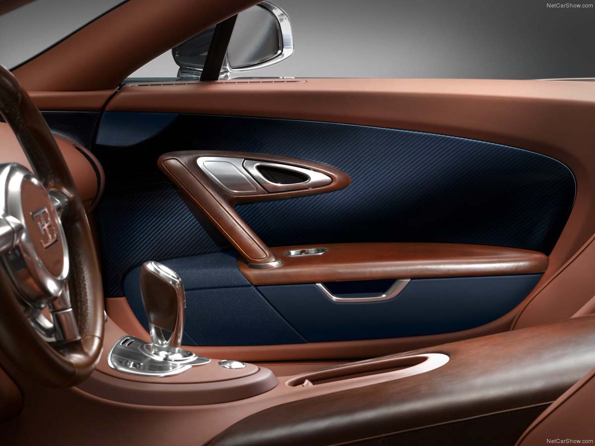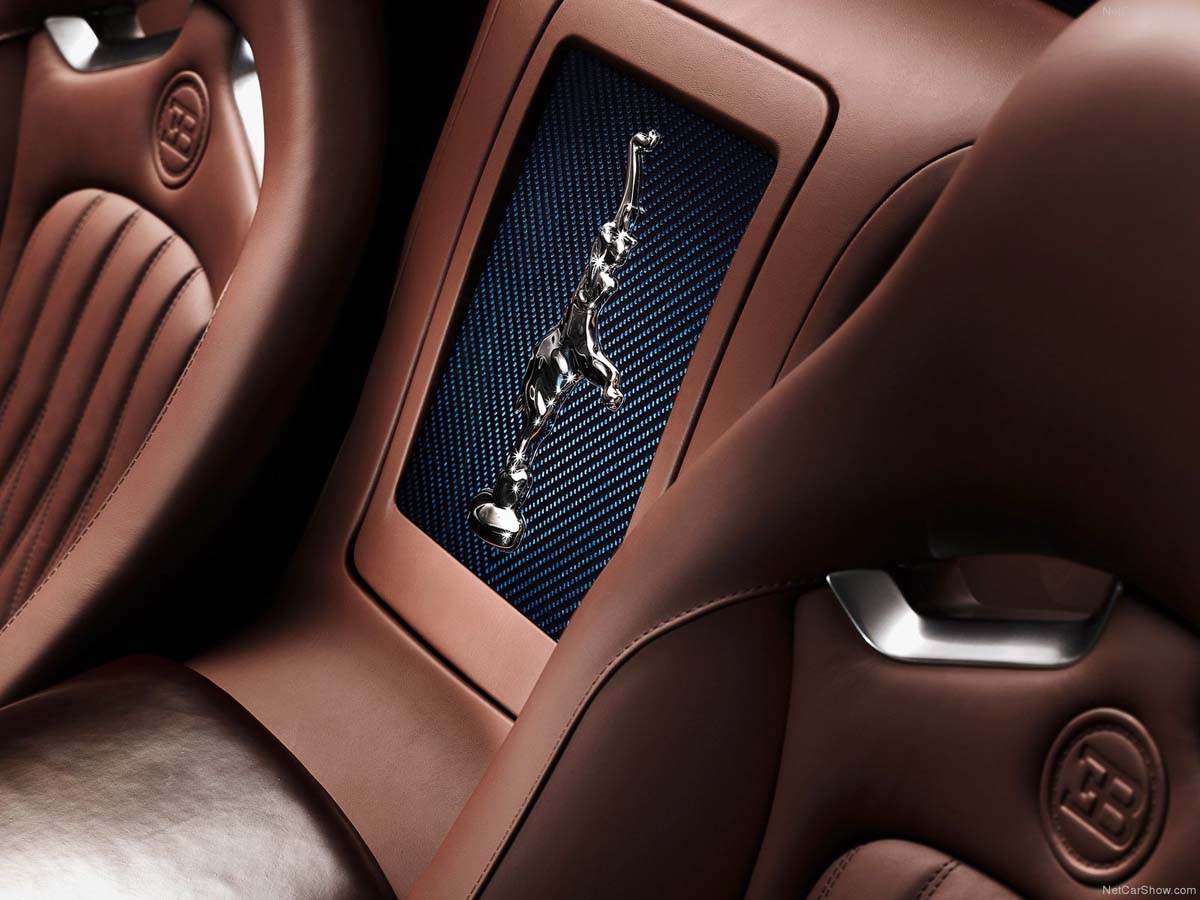 內裝部份,可以看到Bugatti首度使用兩種不同皮革來包覆車艙,並以藍色碳纖維飾板點綴。鋁質的「跳舞的大象」浮雕,則是獻給Type 41。這個雕塑作品原本是由Ettore的弟弟Rembrandt所創作,它也出現在先前的五部特別版當中。Bugatti Veyron Ettore Bugatti將於8月15日在圓石灘車展中首度登場。同時,它也會和前面的5款傳奇特別版共同出現。
