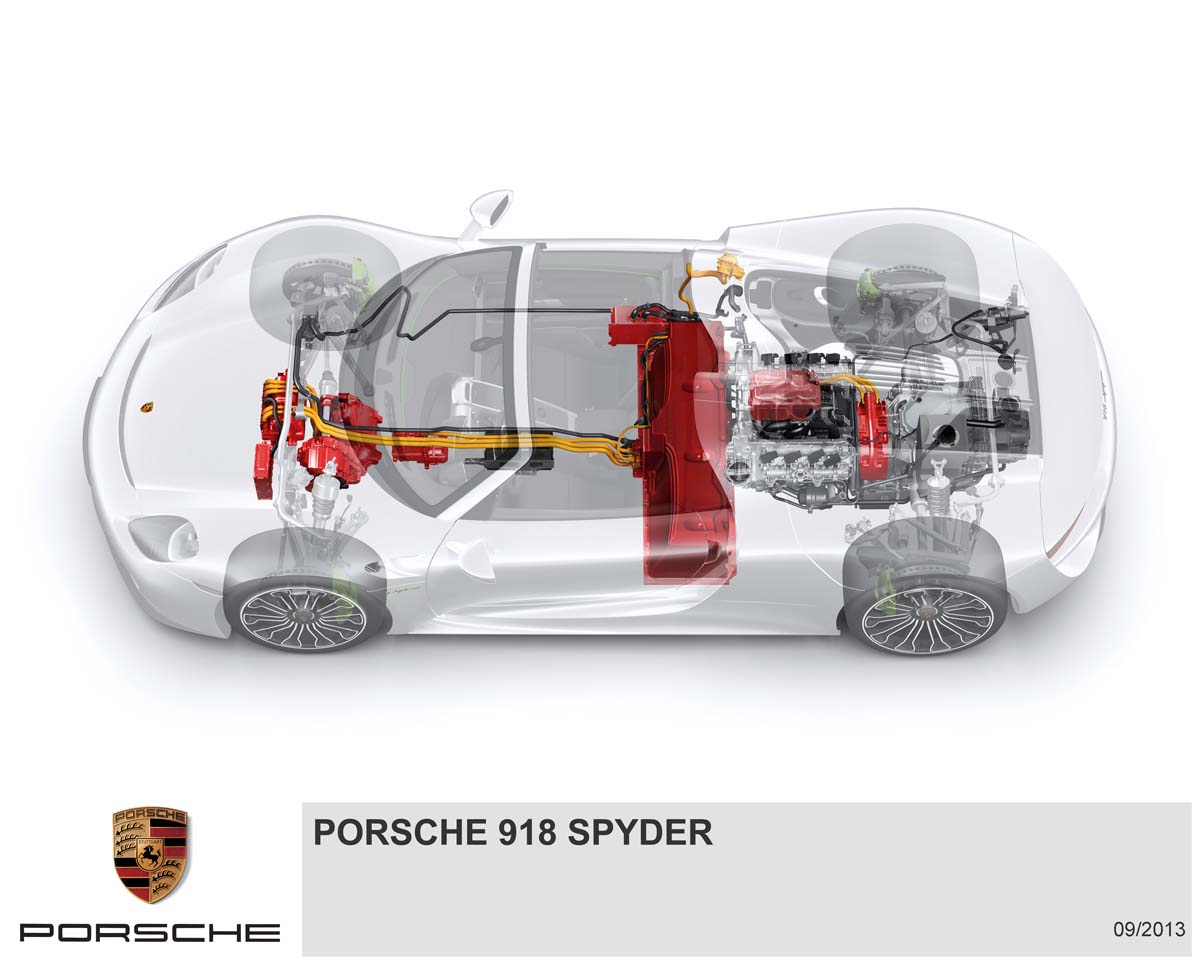 同樣展現混合動力技術潛力的,還有另一部天王級超跑Porsche 918 Spyder。它採用了來自911 GT3 R Hybrid的並聯式混和動力系統,除了兼具純電力驅動、引擎獨立驅動或混和動力驅動等三種模式外,4.8升V8引擎和前後軸電動馬達的配合,更可產生887hp的綜效馬力。另外,對F1賽事經驗豐富的McLaren,也在旗艦P1上導入了F1賽車科技來迎合目前的節能趨勢,其3.8升V8雙渦輪高增壓引擎,以及整合於引擎與變速箱之間的電動馬達,兩者相配合下可輸出916hp,可說是限量頂階超跑中的節能翹楚。