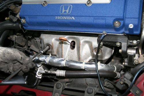 若想改善這種狀況,必須先降低引擎室的溫度。既然問題是出在不鏽鋼排氣頭段,因此可利用排氣管包覆帶將它包起來,減少引擎室內的熱度來源。另外也可以像筆者一樣,在冷氣管路外覆具隔熱效果的鋁箔貼紙,以降低環境溫度對空調系統的影響。前述兩項包覆帶在汽車百貨賣場均有出售,售價約在1000元上下。