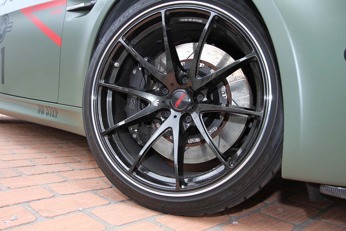 | 19吋Rays鍛造輕量化鋁圈出現在M3上的機會並不多,只有內行人才懂得使用,而鋁圈內的煞車系統也已換成Forge推出的對向多活塞卡鉗。 |