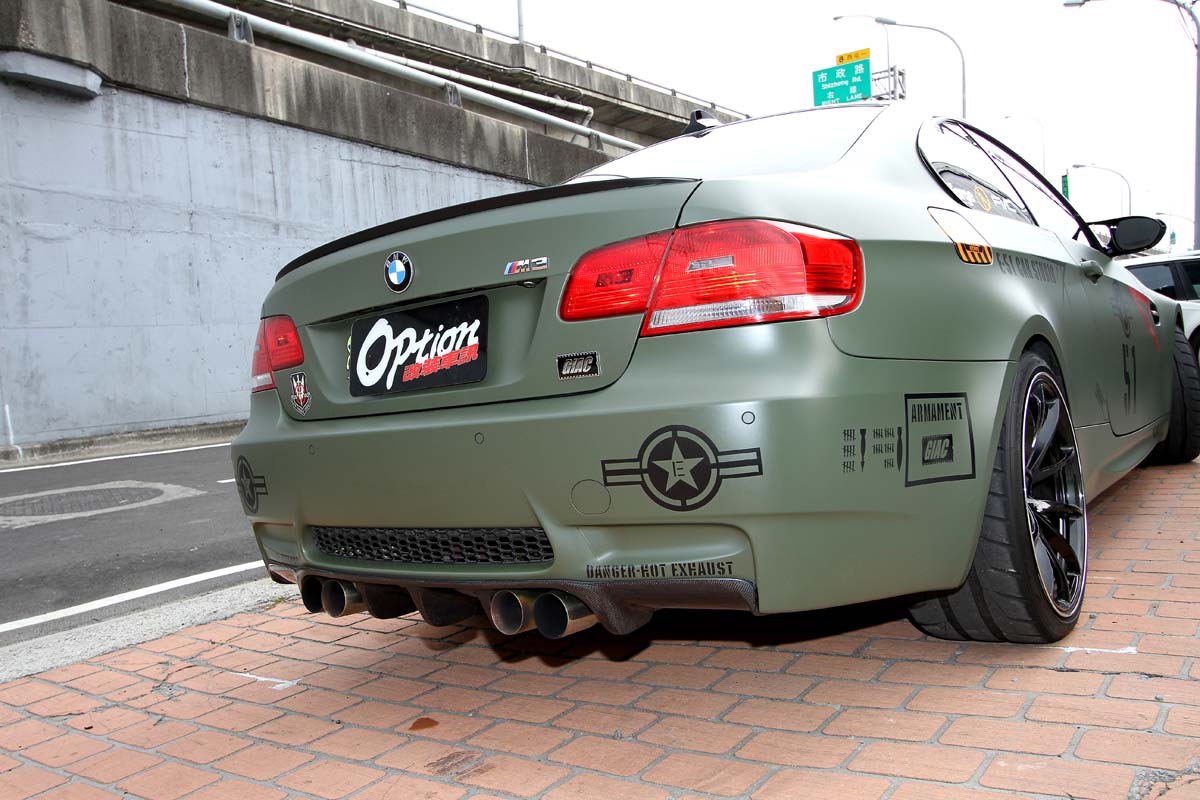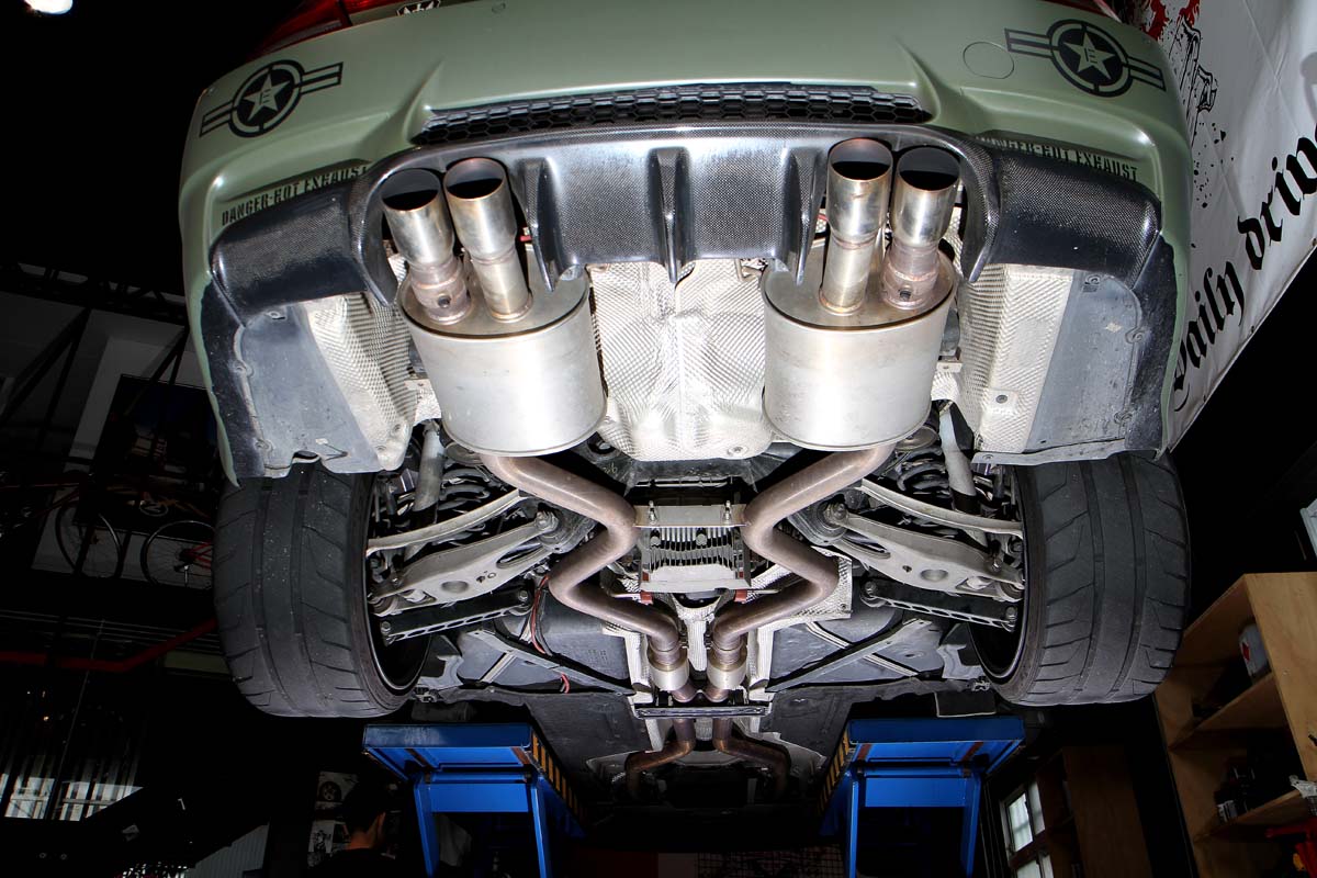 | 全段排氣管也換成E-51所代理的Forge製品,有助於高轉速時的排壓宣洩,而全車墨綠色軍裝色彩,擁有極高的辨識度,開在路上想認錯都很難。 |