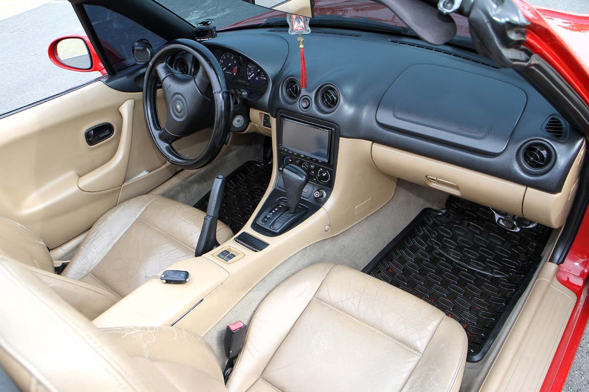 | 內裝是較豪華的雙色皮椅配置,且車主保留原廠4速自排設定,兼具拉風與便利性,標準買菜車無誤。 |