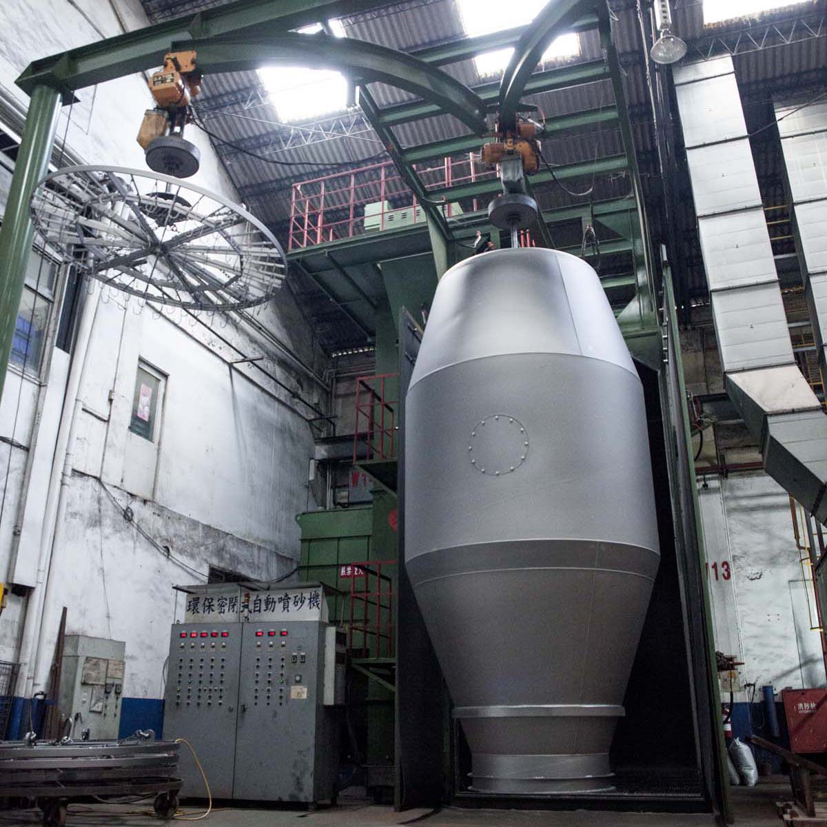 | 目前特種車的打造仍是健益汽車的主業,水泥攪拌車的攪拌器生產製造有各式自行研發設計的冶具,甚至是先進的自動噴砂技術讓健益的技術獨步業界。 |