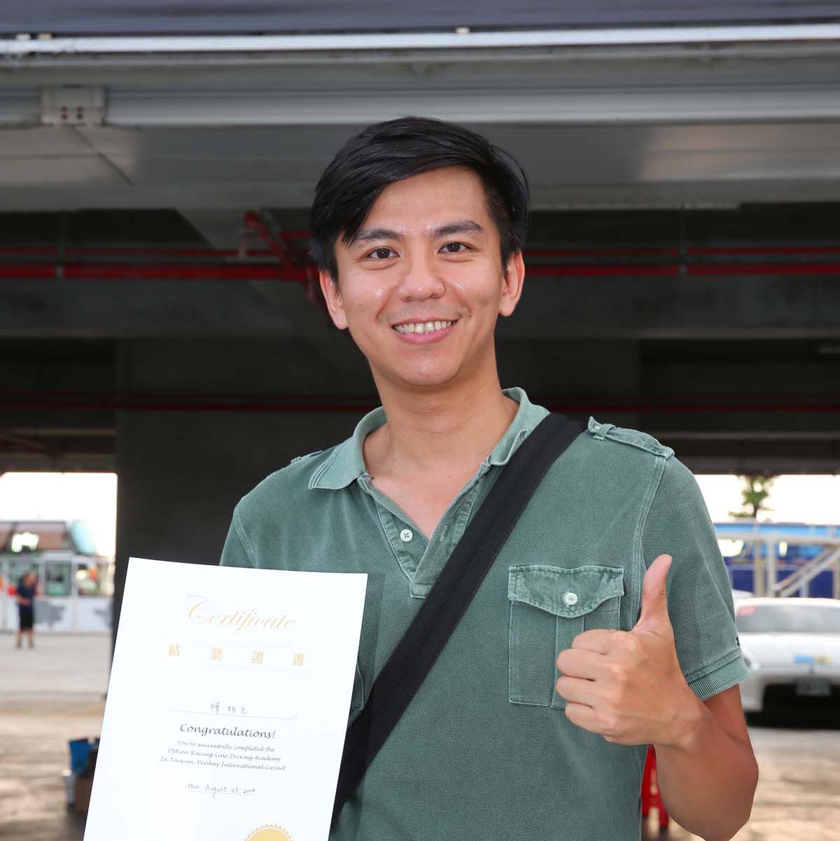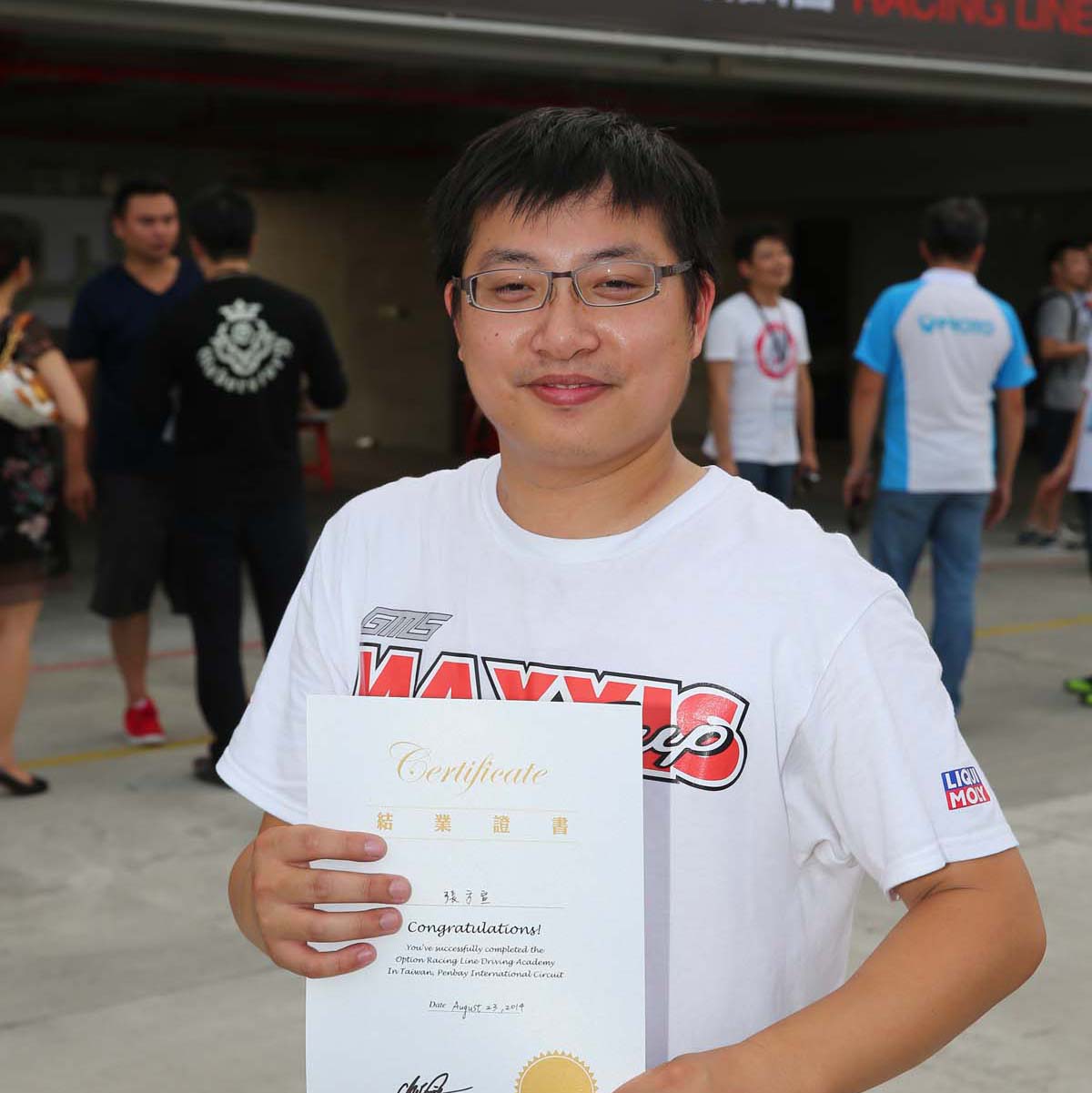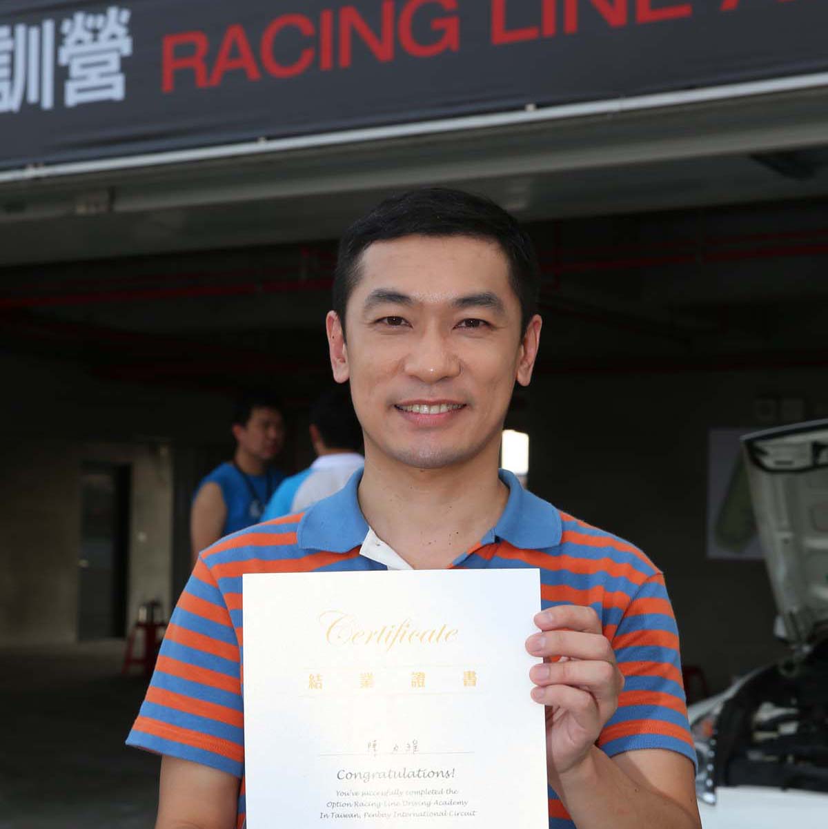 本身是從事汽車相關產業,加上家人也有投入國內賽事,為了能夠多了解賽車運動,因此報名參加Racing Line賽道駕駛培訓營課程,而實際上課之後對於賽道駕駛技巧與注意事項真的超乎想像,一般道路的駕駛觀念與技巧根本無法應付,相反的藉由賽道所學的觀念反而能夠讓自己的開車節奏更為順暢,雖然這次是租手排車加以練習使得表現上有些生疏,不過能夠在賽道上駕駛的樂趣確實難以形容。在教練詳細的解說之下也讓還算新手的自己獲益良多,尤其路線、煞車、油門與檔位的選擇,看似相當忙碌的賽道練習也讓自己學會如何按部就班地完成每一道程序,或許在多加練習之後也能夠有機會參加OPTION CUP計時賽。