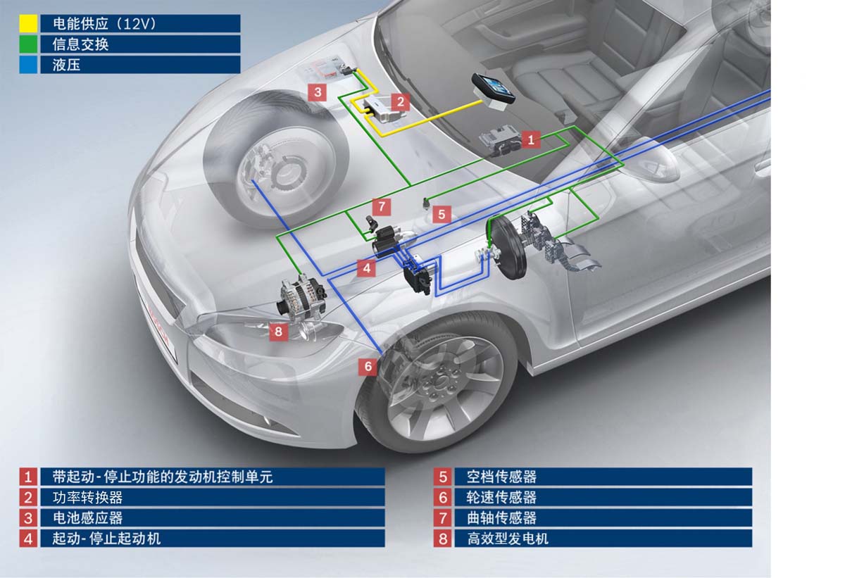 | Bosch針對怠速自動啟閉系統,相繼推出了高級版和滑行版,前者在車速低於20km/h時會自動熄火,後者則可在車速低於120km/h的行進間讓引擎熄火。 |