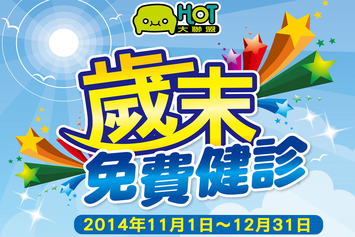 隨著氣候轉涼,歲末年終漸近之際,HOT保修大聯盟為了讓車主們的愛車能夠保持最佳狀況,同時維護行車安全放心出遊,即日起至2014/12/31止(不含星期日與國定假日),特別推出「歲末免費健診」活動,提供引擎、煞車、底盤、輪胎、燈光等21項進行全方位健檢,另外活動期間實施定期保養即享有零件、油品9折優惠,歡迎車主們在把握良機先行預約,馬上到HOT保修大聯盟服務據點享受最安心、最實在的行車安全健診,讓愛車在行駛之下奔馳順暢,和家人朋友們一同享受HOT保修大聯盟帶來的專業技術與尊榮服務!