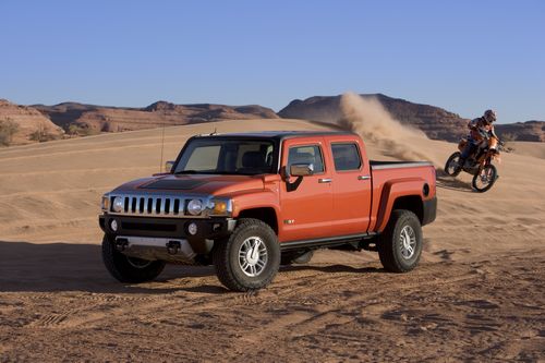提起Hummer,各大戰爭片中衝鋒陷陣的剽悍身影讓人印象難忘,而在芝加哥車展中登場的H3T,可是將美式貨卡精神再度發揚光大。1.5公尺長的貨斗可以塞進兩部越野機車或是一部雪上摩托車,最大拖曳重達2676kg,動力源有3.7升直列五缸與5.3升V8引擎兩款,前者可輸出242hp/3.5kgm,後者更可榨出300hp/44.3kgm的動力水準,在強悍的四驅系統與高底盤的優勢下,上山下海如入無人之境,時速八公里時可涉水深達61cm,Hummer H3T不但悍,而且夠野,完全滿足老美的Truck需求。
