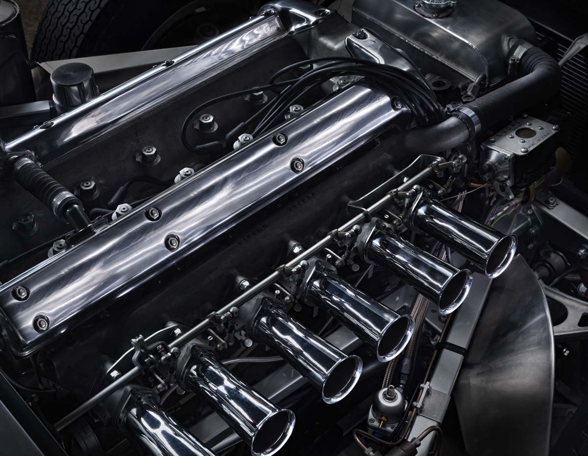 全新輕量化Lightweight E-TYPE搭載當年首次於1948年搭載於XK120車款的XK直列六缸汽油引擎,並於50年代在C-TYPE和D-TYPE兩款車上奪下了5屆的利曼大賽冠軍。排氣量為3868c.c.,12V,採用「Wide Angle」寬角度汽缸上座,並將原鑄鐵汽缸體改為全鋁合金設計,搭配源自賽道的乾式油底殼,以及45DCO3韋伯氏化油器,並提供Lucas機械式燃油噴射系統供選配,壓縮比為10:1,可輸出340hp / 6500rpm的最大馬力,以及38.77kgm / 4500rpm的最大扭力,藉由輕量化低阻力飛輪的單片離合器密齒比四速手排,搭配3.31:1的標準終傳,完整復刻1963年的性能風華!全新輕量化Lightweight E-TYPE底盤採前雙A臂搭配扭力樑圈簧,後獨立多連桿式搭配下A臂的懸吊系統;前輪煞車系統則較1963年版本加大至12.25吋,搭配15吋打孔鋁鎂合金鋁圈,前後輪寬度分別為7 / 8吋,標配Dunlop競技用胎。