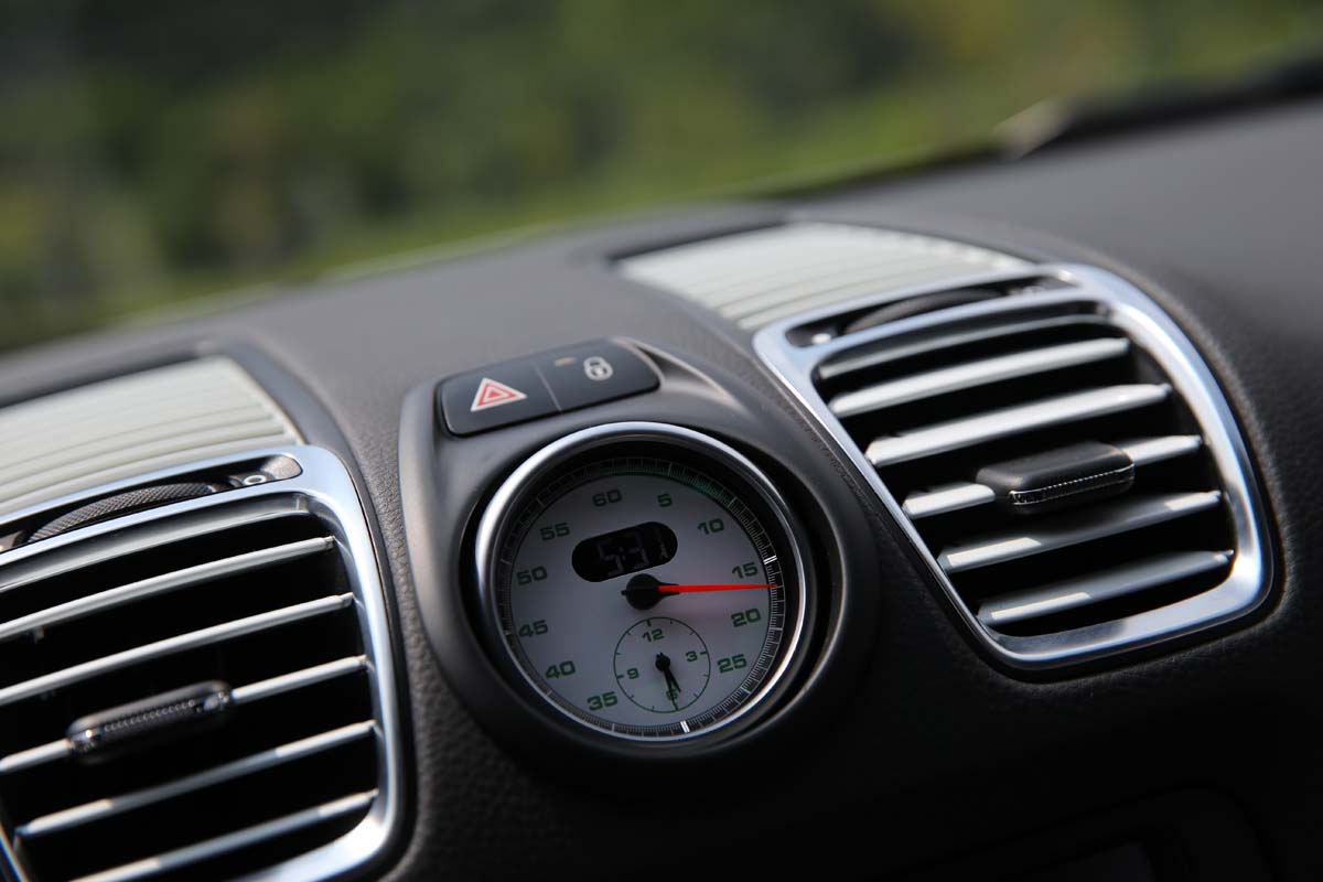 | 深綠色的計時器刻度說明Ruf並非全部使用來自Porsche所供應的零件,一些關鍵性部品仍為Ruf所自行開發。 |