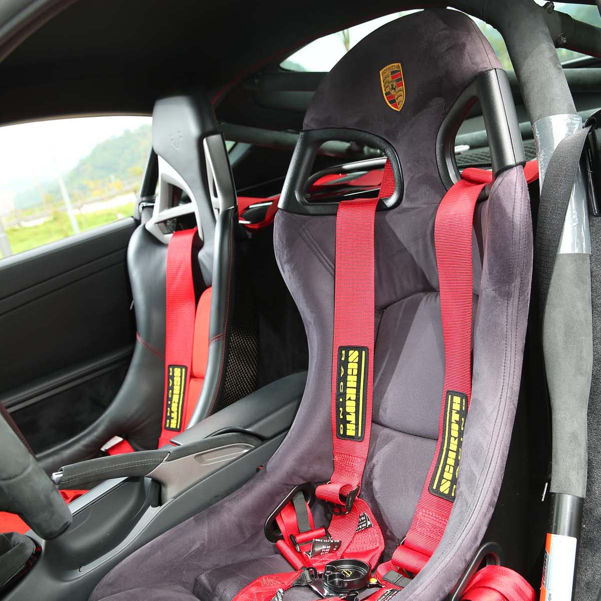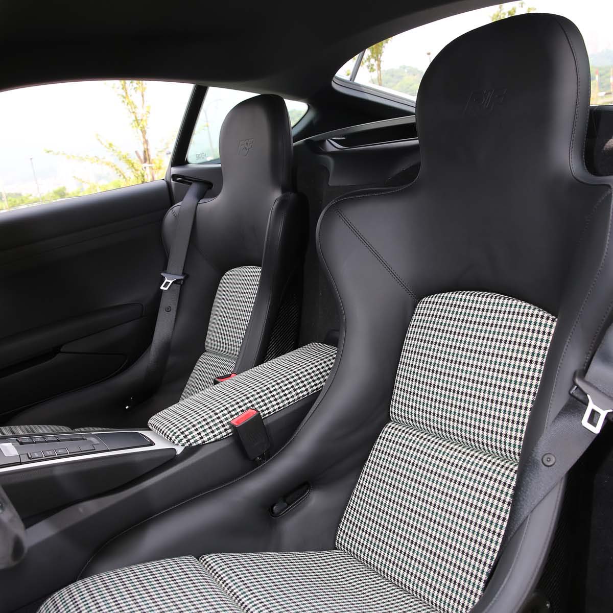 | 為符合賽道需求,車主特別換上了兩張分別源自996 GT3(駕駛座)與997 GT3(乘客座)的桶型賽車椅與四點安全帶。 |