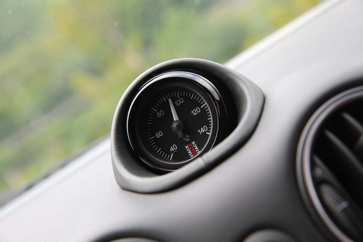 | 正中央的計時套件儀錶改由競賽專用的Stack機油溫度錶所取代。 |
