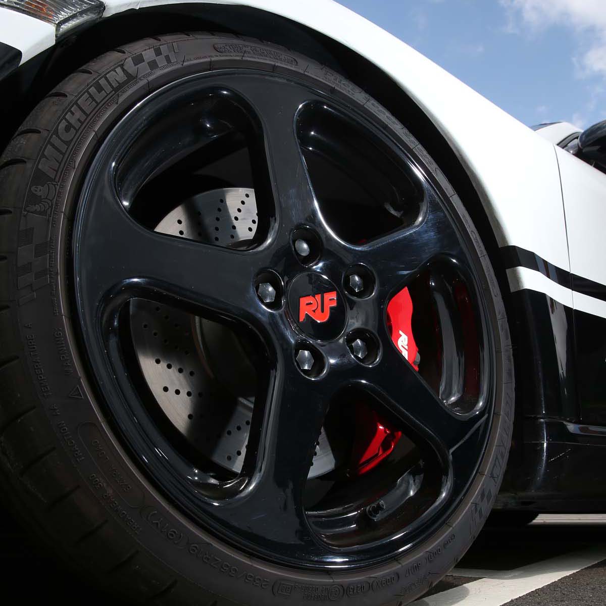 | 輪圈為Ruf的19吋規格,煞車系統同樣為前對向六活塞卡鉗與通風碟。 |