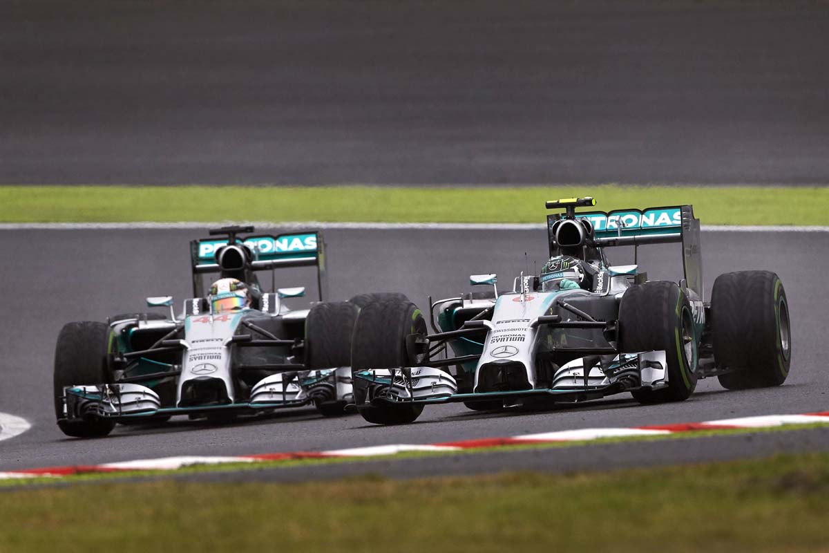 | 追近、超越、放遠……在日本站的溼地上,Hamilton以實力證明自己的手腕比Rosberg高上一截。 |