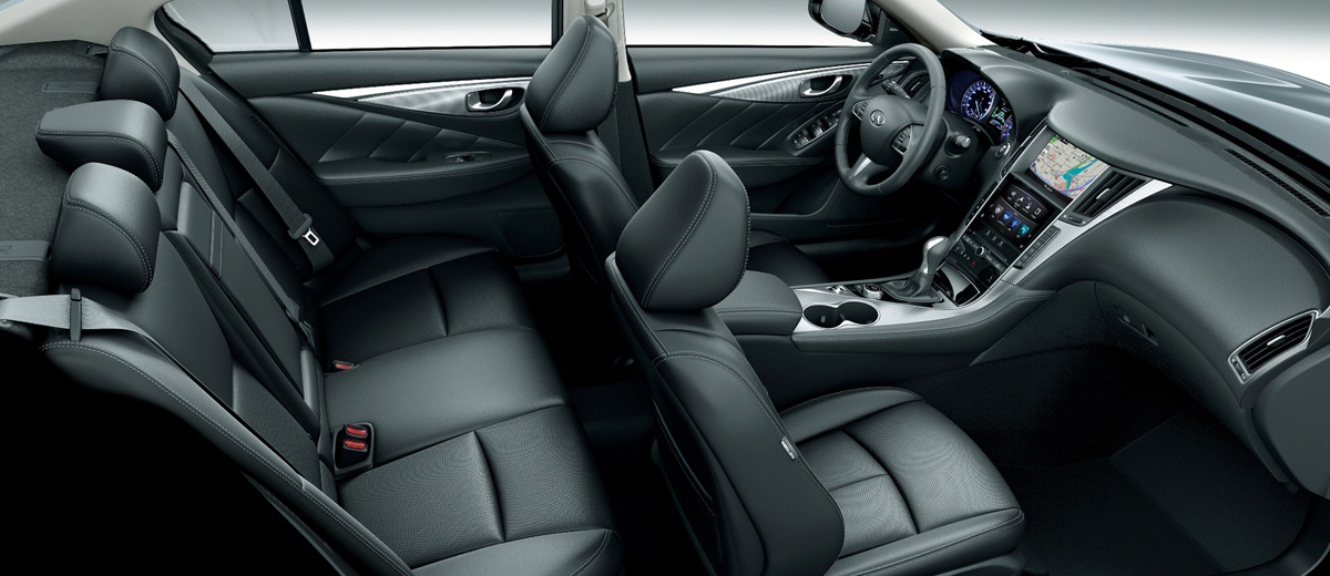 INFINITI Q50融合概念車思維打造車室空間,以DOUBLE WAVE艦橋式座艙設計,降低前座的壓迫感,並以同級唯一的Intouch雙螢幕主控台,整合各項車輛資訊操作。同級最長的2850mm軸距,不僅創造寬敞舒適的後座空間,以旗艦規格的尊榮禮遇金馬巨星,更讓INFINITI Q50展現豪華轎跑車的俐落大器。