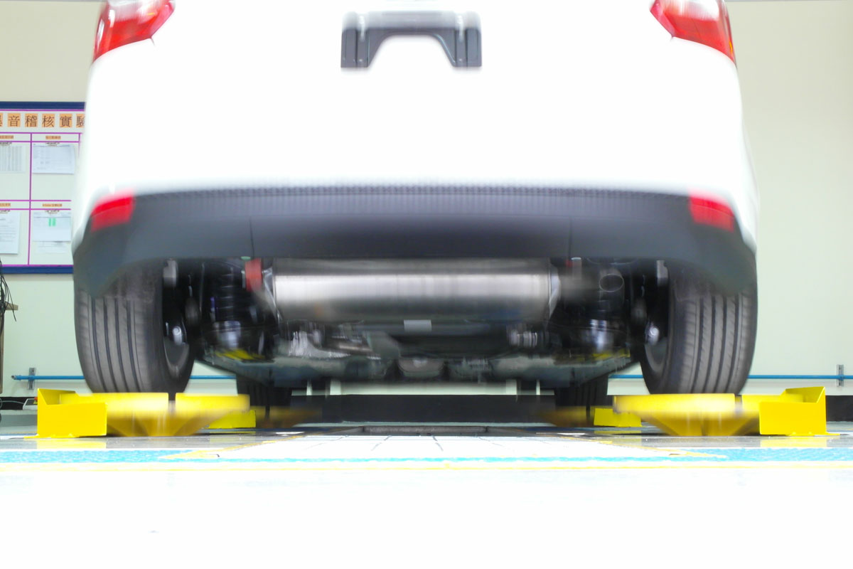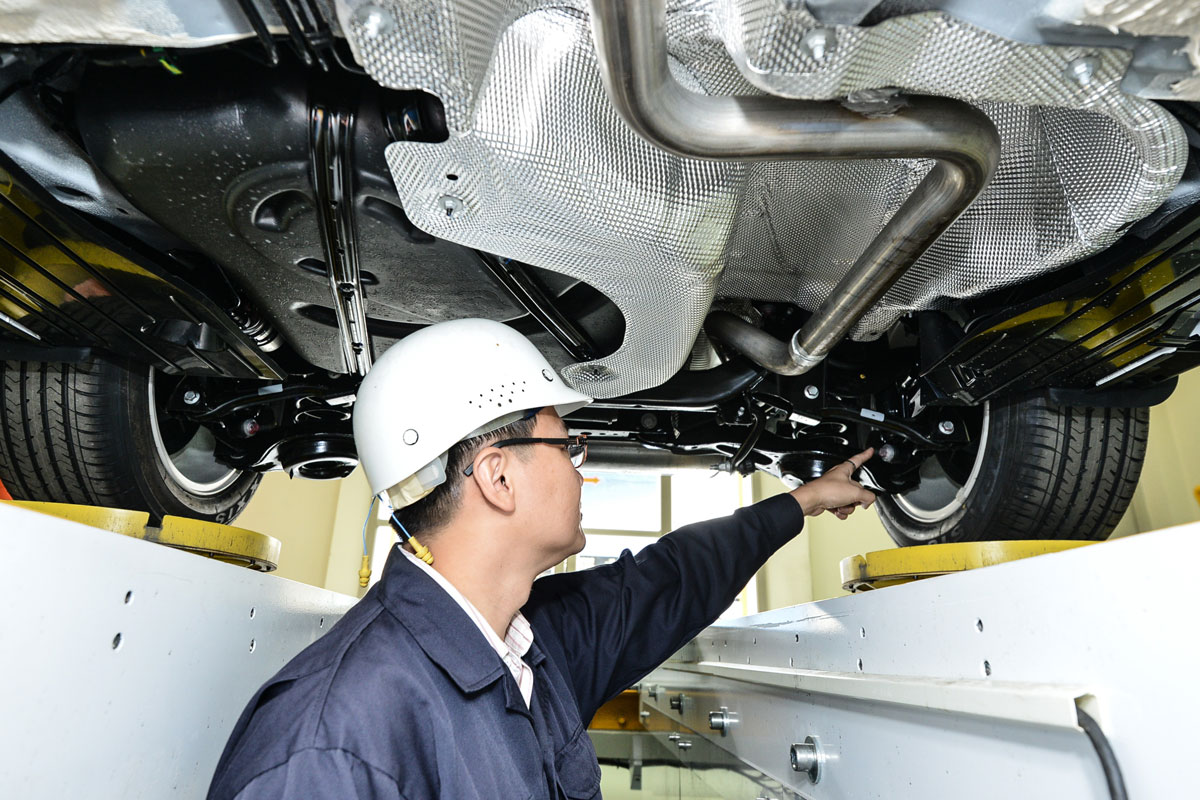 路況模擬實驗室(4 POSTER)測是以抽測10%的新車進行模擬測試,將路譜資訊輸入電腦並模擬各種狀態,甚至可能發現測試道上很難出現的異音,更可透過重覆模擬、持續出現同一個問題後確認異音來源,更有效進行產品或生產對策。