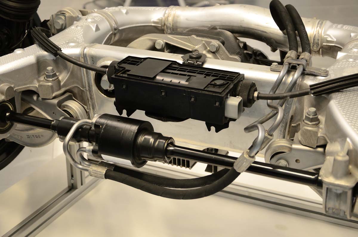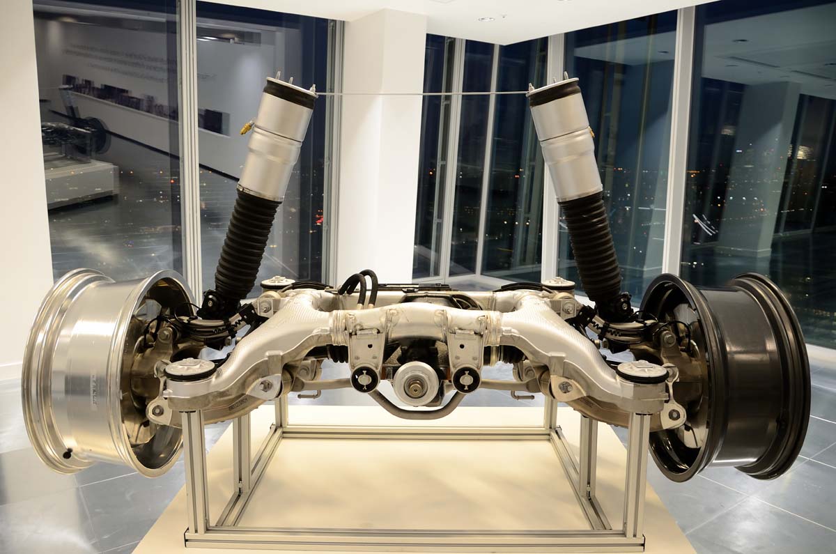 | 後懸吊的防傾桿可由電腦來控制接合或斷開,直線行駛不會接合讓懸吊獨立運作來吸收衝擊力,轉彎時會接合以抑制車身側傾。 |