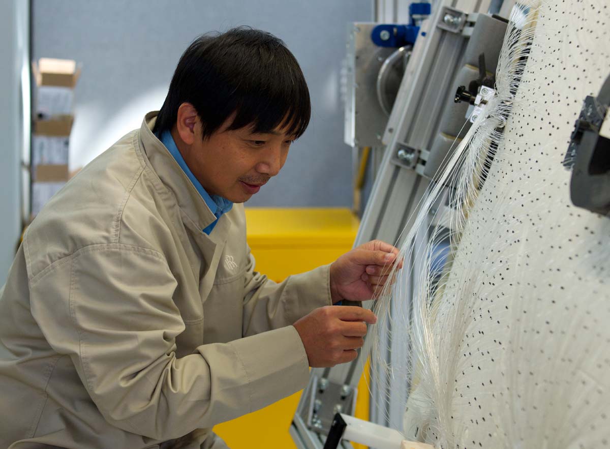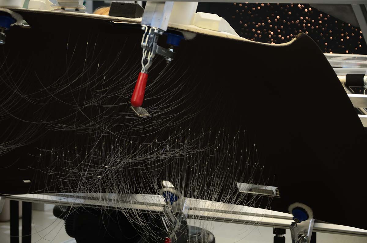| 參觀生產線時我趁機體驗了星空頂蓬的製作過程,要將高達1340顆一一安裝完成並確認每一顆都固定牢靠且可以正常運作確實不容易。 |