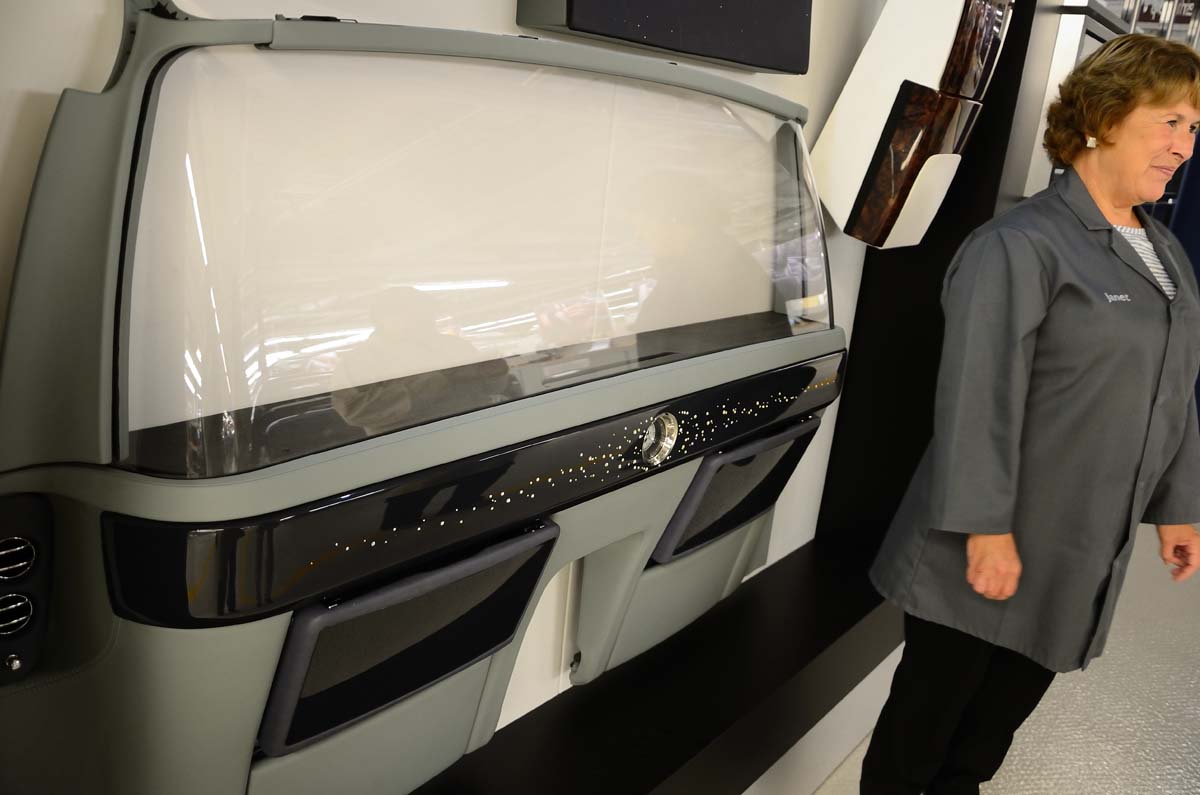 | Bespoke客製服務的項目包含非常廣泛,後座隔屏只是其中一項,圖中這塊隔屏甚至還鑲入多顆純鑽以突顯其獨特性。 |