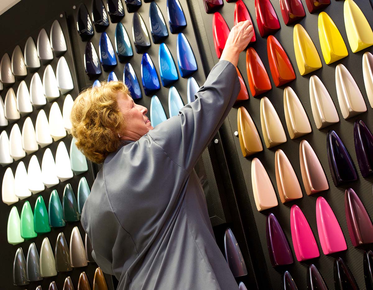 在參觀過程中,讓我最印象深刻的一句話就是:只要你有想法,Rolls-Royce就能為你量身打造,以車身塗裝顏色為例,如果現有的4.4萬種車色還無法滿足你的需求,客製部門也能夠特別為客戶調配出獨一無二且前所未有的顏色,且有趣的是這個顏色還會以客戶的名字作為名稱,當然在內裝皮革與座椅型式或圖騰的設計也是相同的概念,如內門把手、所有按鈕、中控檯或空調出風口都可以依需求改變顏色或材質,只要這項要求是Rolls-Royce能力範圍內可以辦到的,都會想辦法完成,這也是Rolls-Royce不斷強調的Bespoke精神。