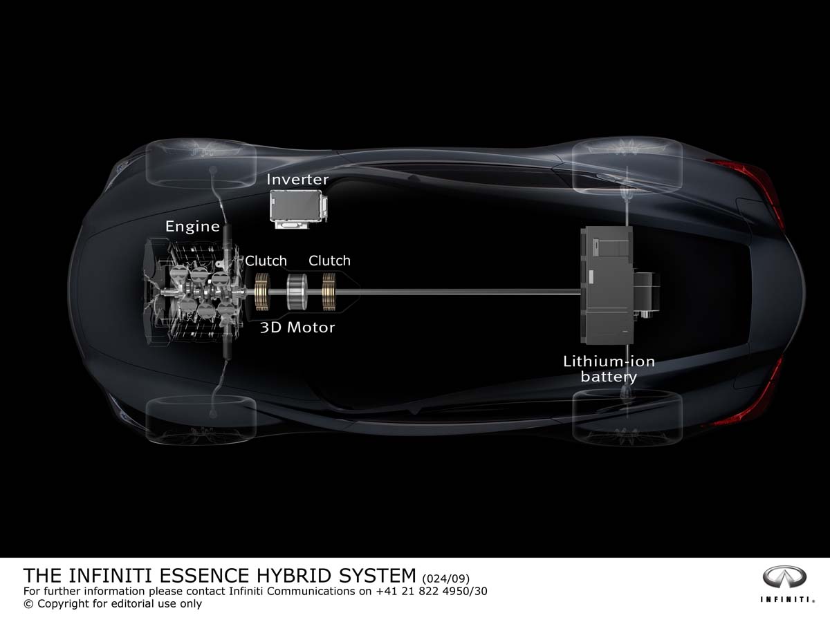 雖然測試車還沒採用新底盤再套上新車殼,但估計原廠此次試煉的是未來GT-R所要採用的新動力系統就是傳說中的Hybrid,此樣本參考的或許是2009年日內瓦車展Infiniti Essence Concept的3.7升V6雙渦輪增壓加電動馬達,估計可以到達650hp~700hp的實力;採用Hybrid的確是很聰明的做法,因為量產前的測試必須通過未來的美規和歐規排放標準,規定數字會嚴苛到什麼程度我們很難想像,GT-R如果要做好準備,花時間開發油電混合動力是唯一之計,因為昔日的對手NSX也這麼做,而且還會有爆錶的超高科技。