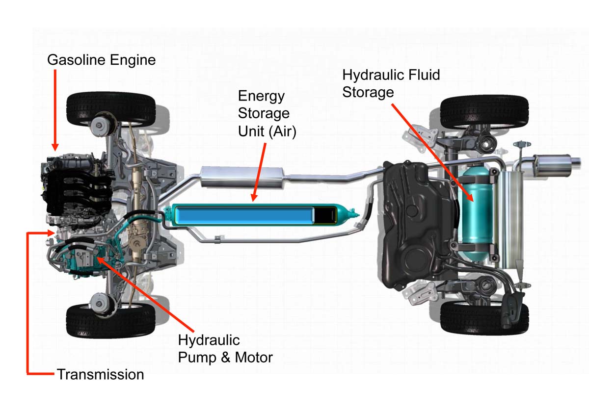 近來歐盟開始針對汽車碳排放推行日趨嚴格的法規,因此各品牌無不加快腳步研發更節能的動力系統,Peugeot也不例外,PSA集團於本屆巴黎車展推出兩公升可跑100公里的208 Hybrid Air 2L混合動力車款,其體內不僅運用了Peugeot最新的混合動力技術,同時在車身上還加入了大量的鋁合金及碳纖維複合材質來達到輕量化,讓每滴燃油達到的使用效力最大化。208 Hybrid Air 2L標榜著家族內目前最高端的引擎科技,其混合動力系統與一般油電混合動力有所不同,驅動型式並非電動馬達,208 Hybrid Air 2L的1.2升直列三缸汽油引擎搭配的是液壓馬達和高壓氣瓶,最大動力為82hp/12kgm;然而動力輸出為何並非本混合動力車款的重點,焦點在於系統所採用的創新技術,208 Hybrid Air 2L運作原理主要透過後軸上的液壓氣瓶驅動液壓馬達,而動力切換模式更可在純汽油、純氣壓以及汽油氣壓混合模式間轉換。
