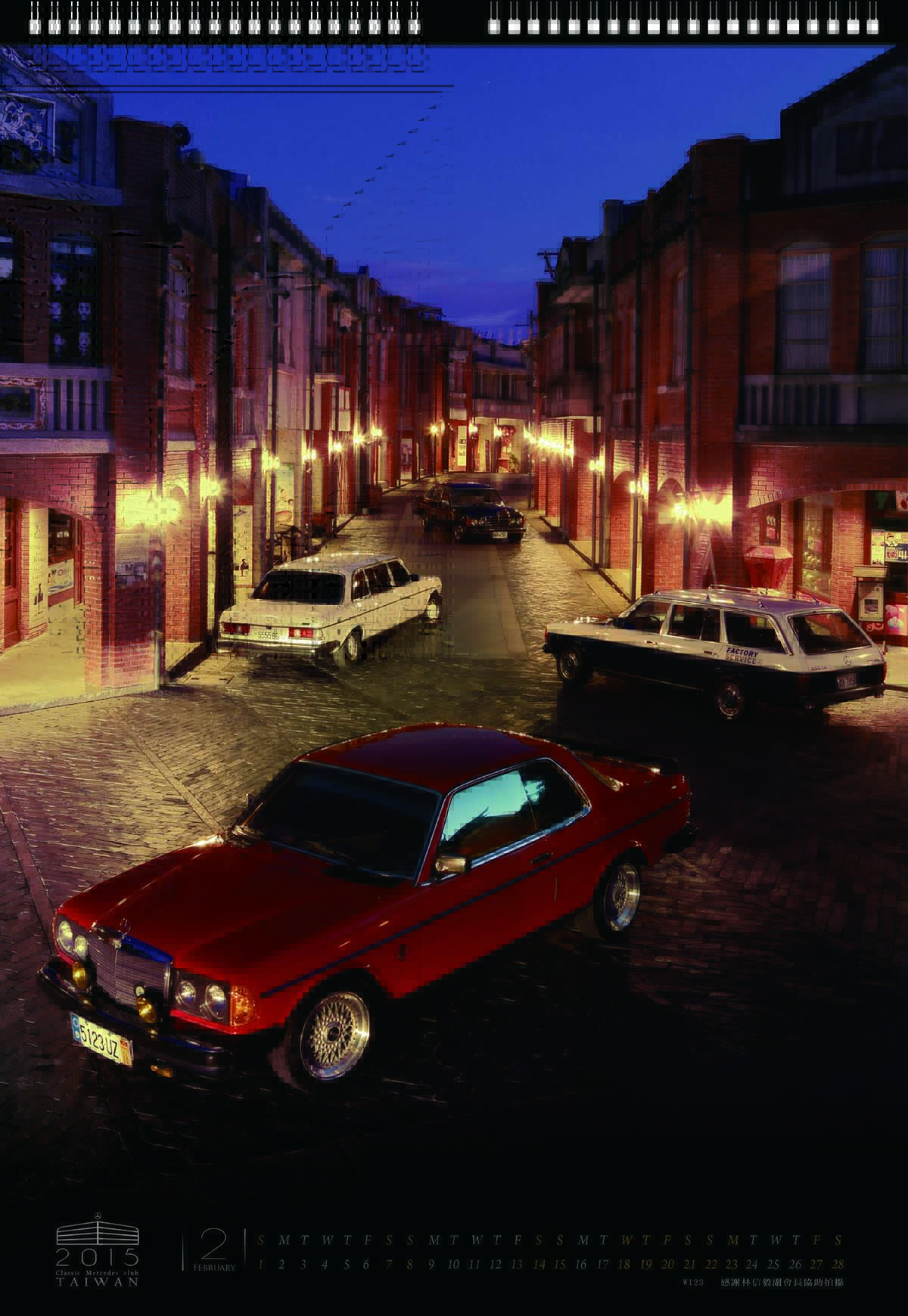 台灣賓士古董車聯誼會2015年度月曆、桌曆拍攝,由交通部觀光局及外交部、台灣鐵路局、宜蘭傳藝中心、九份商圈協會、墾丁國家公園管理處、日月潭管理處、力麗哲園酒店、賓航賓士汽車及聯誼會車友車輛……等全力協助。從清晨到黃昏及深夜,總長1500公里的環島拍攝,記載著滿滿感動台灣人的親切與熱情,除了感謝沿路熱情幫忙的民眾外,最特別是讓我們見證到這輝煌歷史性的一刻,在此衷心感謝外交部協調台北賓館(現為中華民國國家招待所)讓台灣賓士古董車聯誼會成為歷史上第一個進入拍攝的民間團體。