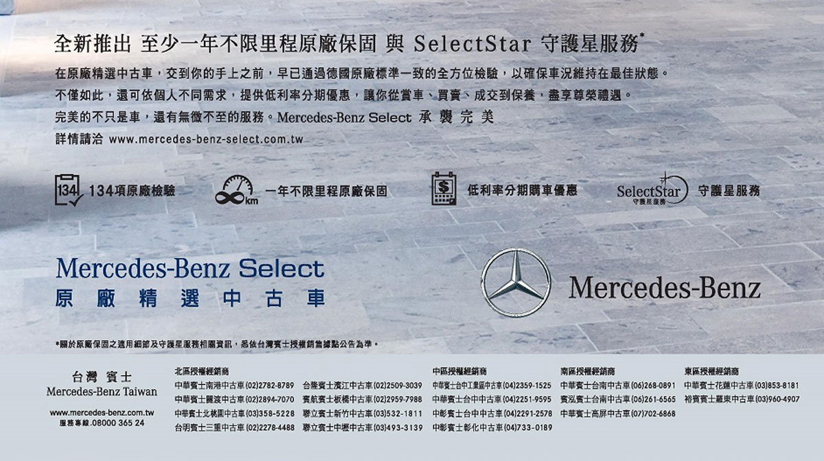 更多服務內容,請點選Mercedes-Benz Select官網:http://www.mercedes-benz-select.com.tw/mbselectintro.aspx