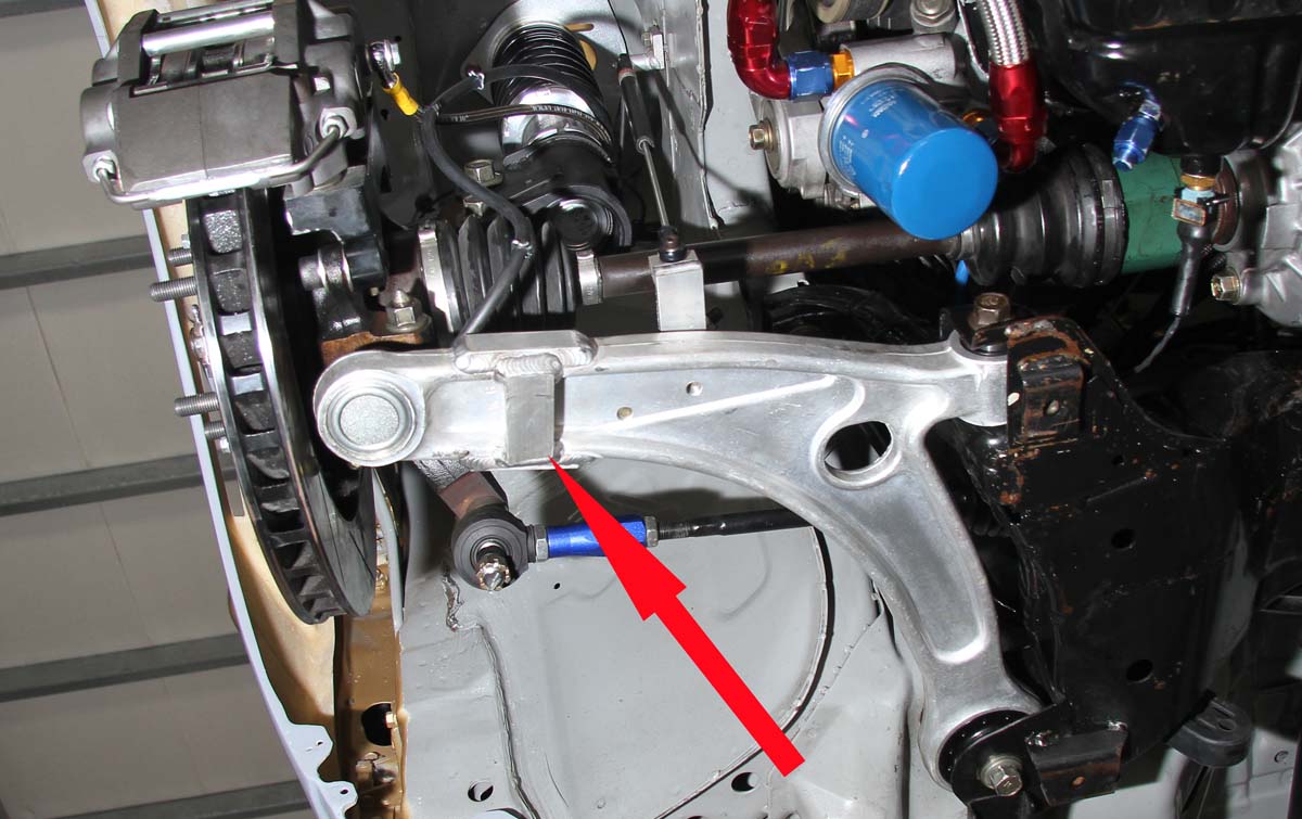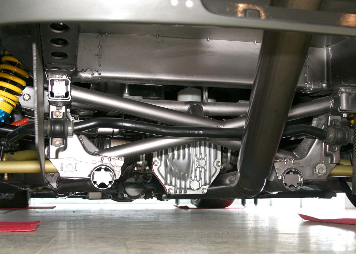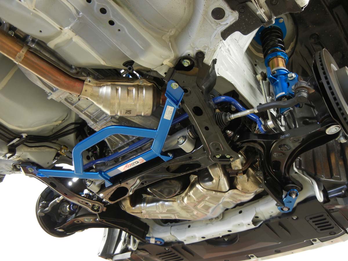 | 除了車底板上方的結構補強外,許多正規比賽車也都不忘記車底下的剛性強化,尤其是前後副樑處的強度更需特別注意,因為這裡是負責固定前後懸吊連桿與三角架的地方,同時也須承擔懸吊拉扯的受力點。 |