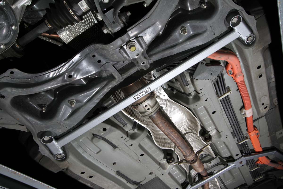 這是一般時下最容易,且價位普通的改裝方式,為什麼要加裝這個零件呢?此零件是車身強化中最基本的一項,也是補強車體負擔最多之處的重要零件,採交叉方式裝置在懸掛固定點的它,乃是直接接受來自地面的震動力量,若是從拉桿往車體方向的力量沒有消失,不但懸掛系統的位移量會減少,車體搖晃的情形亦將因此降低,進而提昇行駛的操控性能。雖然因為有減震筒、彈簧吸震的關係,使得加裝拉桿後並不會感到明顯的加強,可是有裝跟沒裝的實際差別很大,尤其跑山路是更加明顯感受出差異。