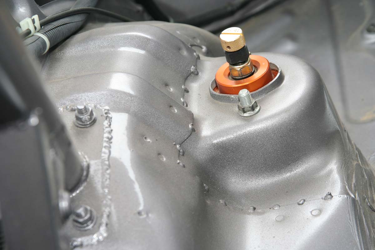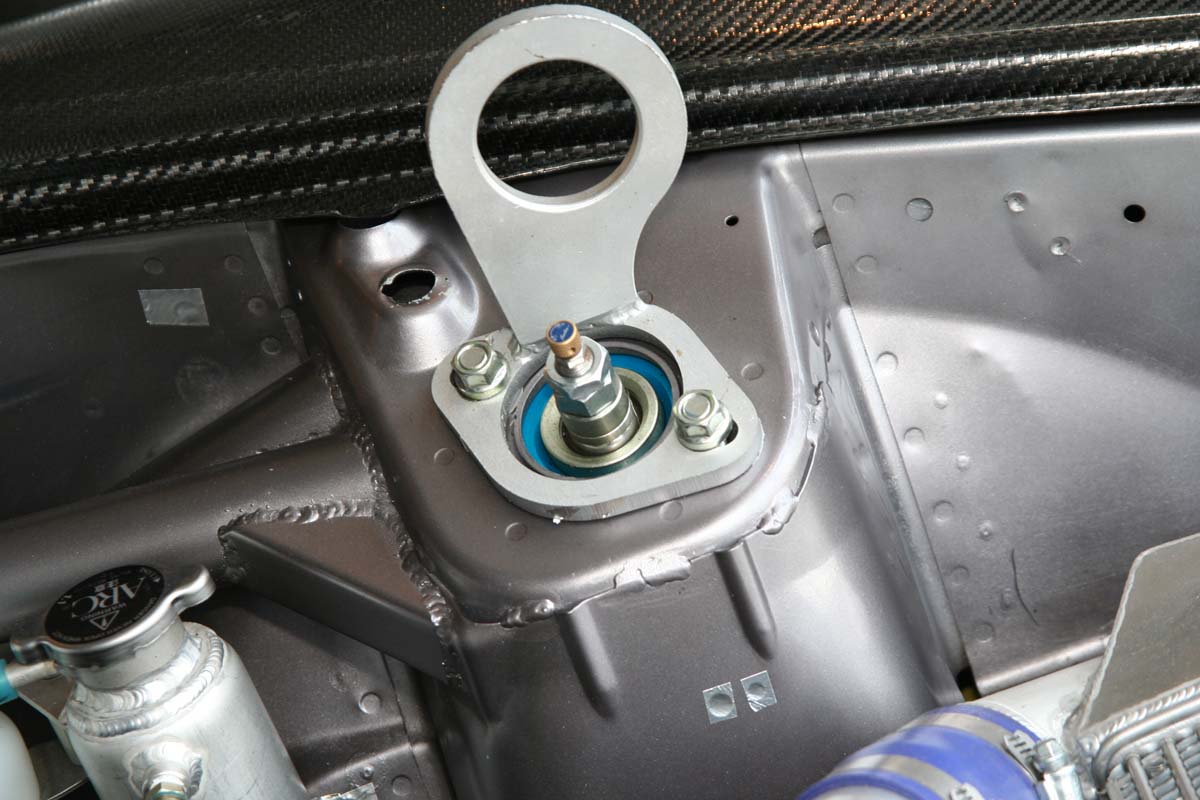 | 引擎室拉桿要發揮作用,避震器塔頂的固定座設計很重要,一定得和避震器上座之鈑件吻合,兩者裝配後緊密的接合,才能有效的抑制上座的變形或鈑件破裂。 |