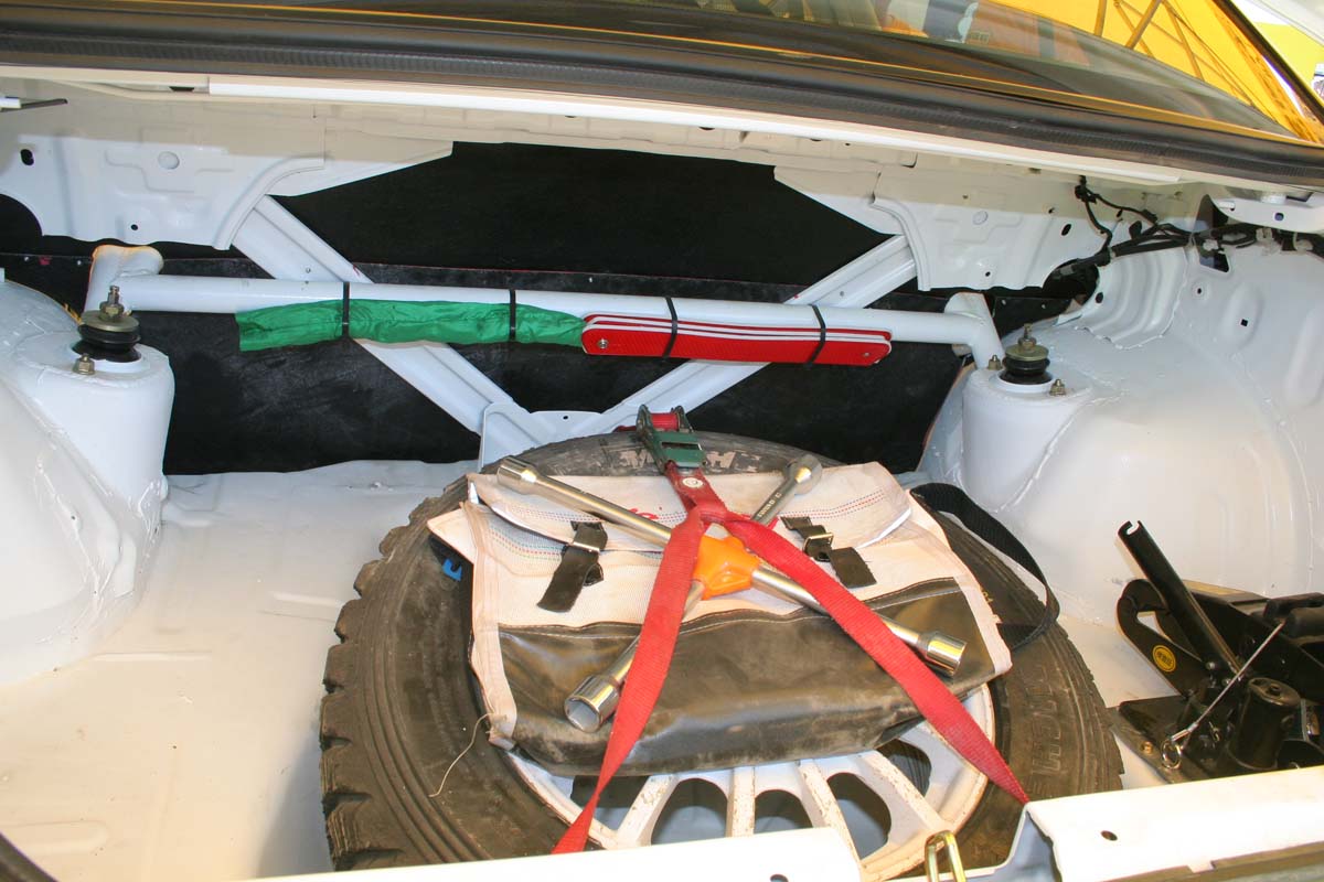 | 對於車體剛性要求最高的房車賽事當以Rally拉力賽莫屬,因此車內隨處可見密密麻麻的防滾籠,除了提高車體應付飛躍、坑洞與彈跳的能力外,保護車手安全才是最重要的目的。 |