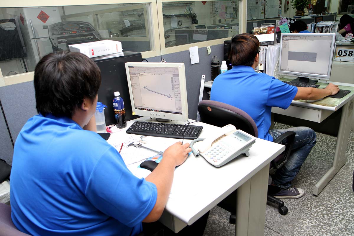 | 此為SPR的開發部門,藉由實際測量結合軟體模擬程式的協助,不只讓拉桿生產速度提高許多,且對於拉桿應補強的弱點也一覽無遺,大大提升拉桿品質。 |