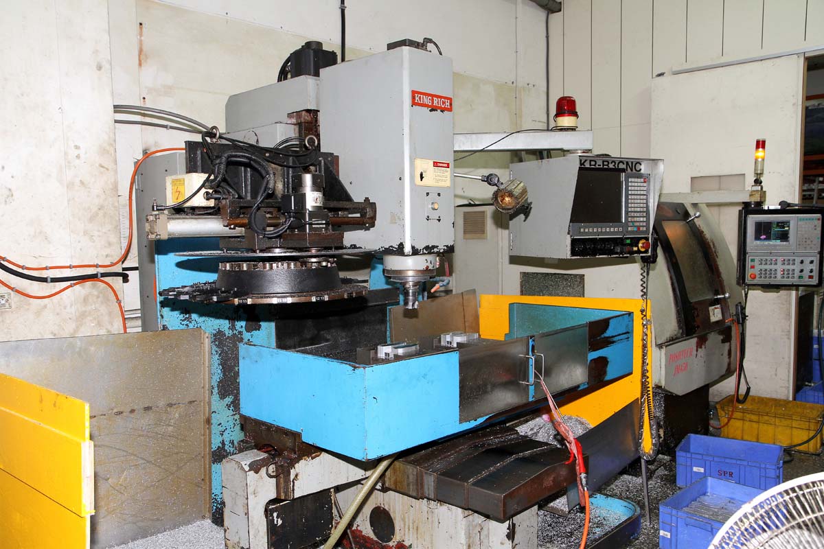 | 這部機台正在切削製作輪距墊寬器的鋁圓盤素材,切削後再經由CNC機台加工與表面處理,就可成為亮晶晶的販售成品,且寬度與規格都可隨車主需求客製化接單處理。 |