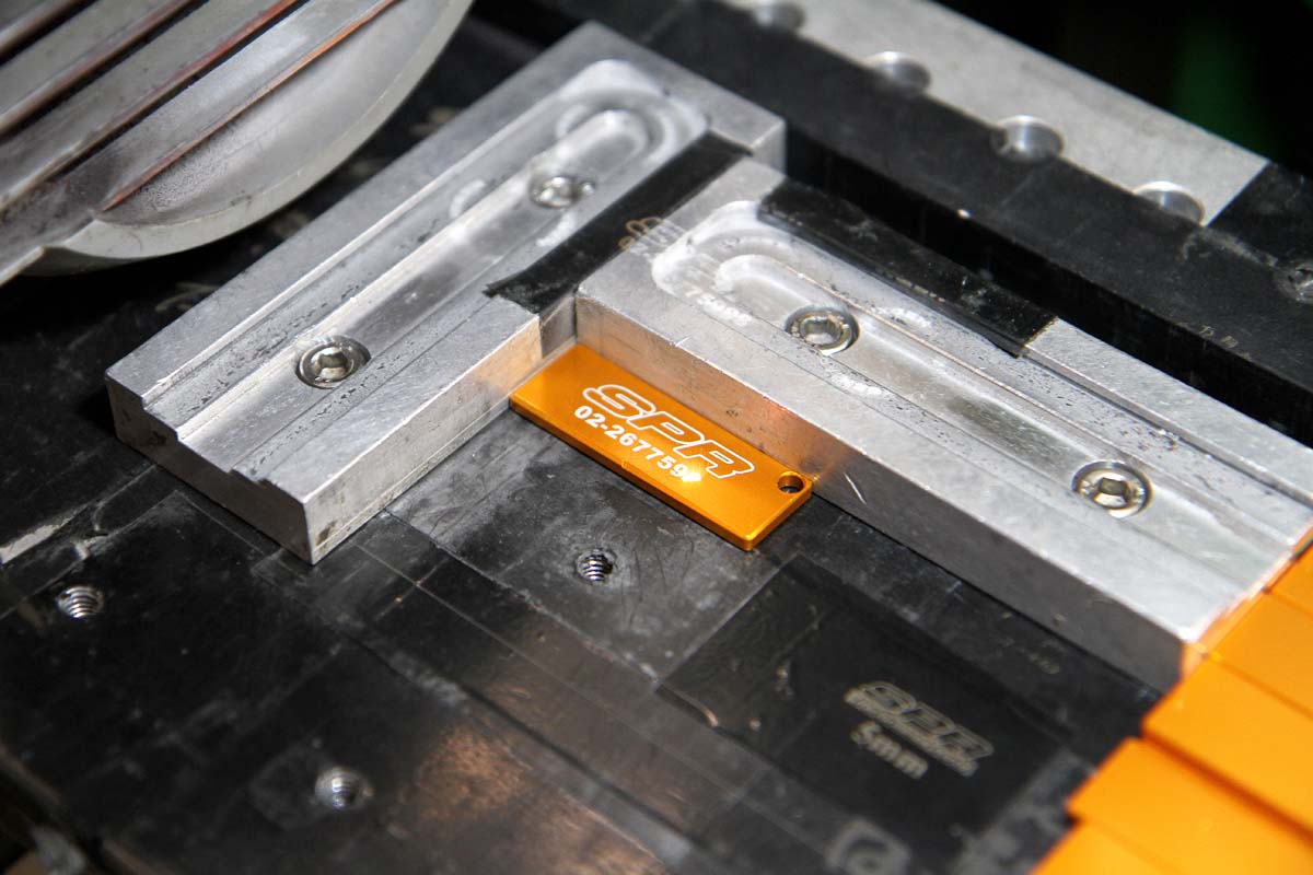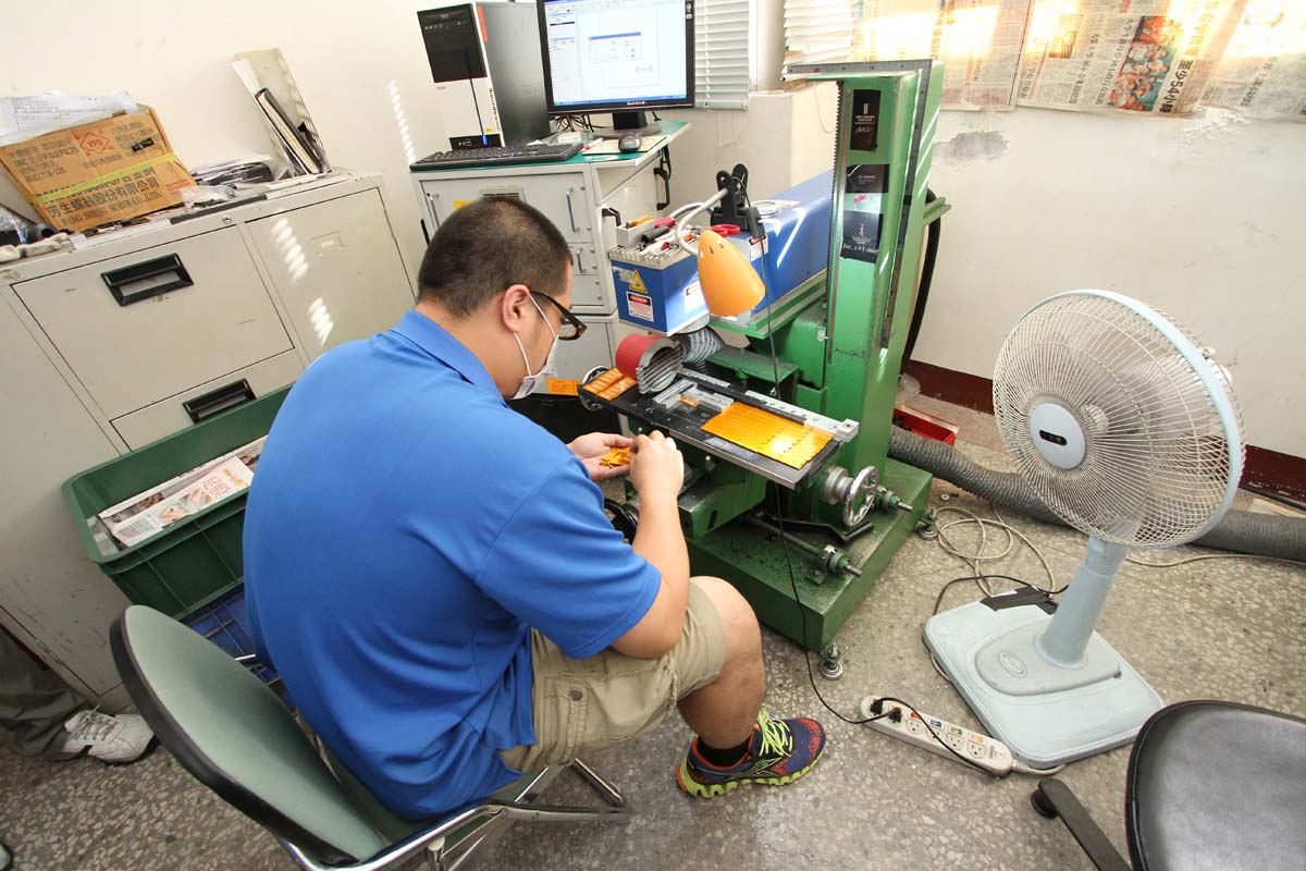 | 這部機器是所謂的雷射雕刻機,可在鋁合金表面雕刻出任何想要的字體與圖案,SPR之所以要自行雷雕,主因在於需求量大,且圖案多部分產品還是圓柱形,為確保雷雕品質,所以乾脆自己來。 |