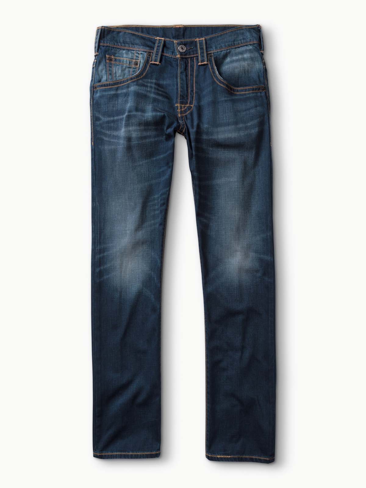 Double Stitch男裝雙線系列丹寧褲,採獨家雙線車縫技術打破現有褲裝工法,雙車線輔以多色面料搭配高調呈現Double Stitch原創摩登的年輕氣息,運用深色與淺色水洗設計和撞色雙車線營造出對比醒目並能修飾腿型。