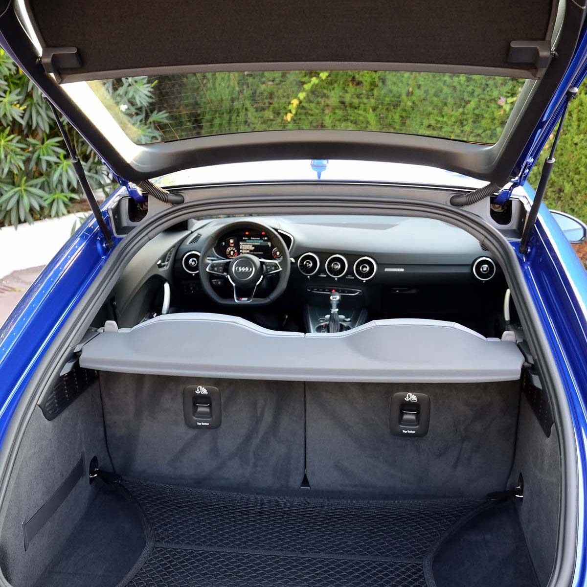 至於空間部分,這次New TT並沒有長大,甚至車長還比過去要縮短了21mm,即便軸距已拉長37mm而達2505mm,但車身依舊維持4.18米的窈窕身材,讓車內乘客有了較充裕的活動空間,對行李廂容積也作出部分貢獻,標準狀態的容積增加15公升而有305公升的表現,椅背放倒可增至712公升的水準,至少可擺入兩套高爾夫球具與衣物袋,假日也能夠開著New TT出遊,而不只是享受速度與駕駛樂趣個人玩具。