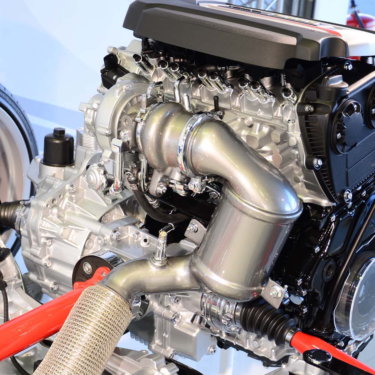 | TTS的310匹馬力引擎採用電動馬達控制的排氣洩壓閥,排氣管頭段與氣缸上座為一體成形製品,縮短進氣路徑並增加渦輪葉片的作動反應。 |