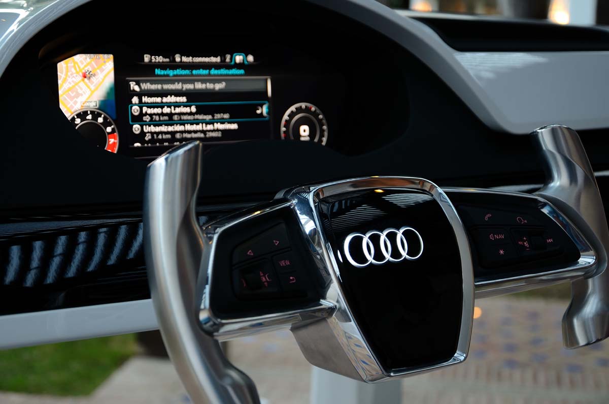 | 內裝採用極簡手法所設計,主要開關與功能控制全集中在方向盤與MMI控制鈕上頭。 |