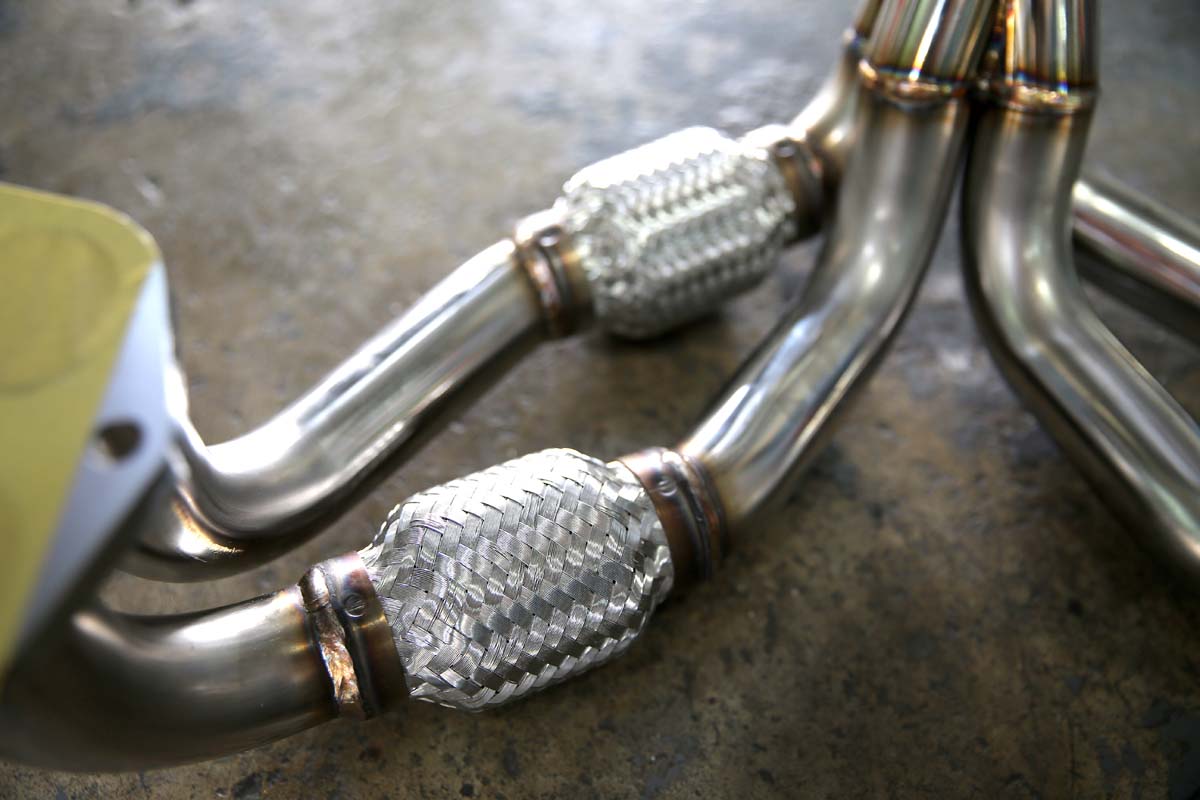 | 排氣芭蕉採用4合一的等長設計,並且考量到強度及引擎晃動等問題,特別在渦輪銜接處施以強化,並且採用蛇管的可動設計來提升整體的耐久度。 |