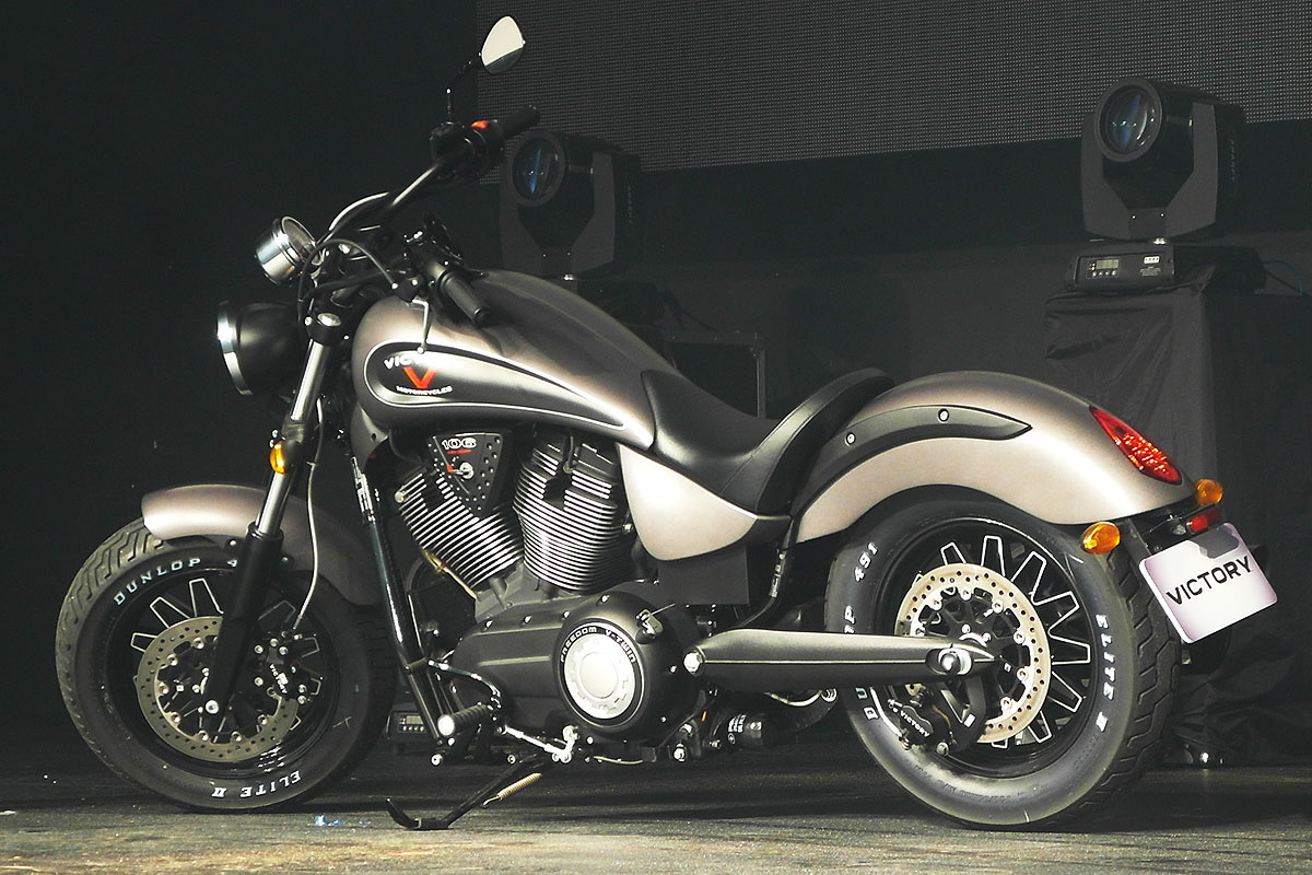 令人驚豔的全新標準2015年式Victory Magnum,前輪採用21吋的大輪圈,行走在車水馬龍的街道上絕對成為眾所矚目的焦點。2015年式Victory Magnum除了保有傲人的態度外,在動力上的進化,更有雙缸106型引擎提供14.66公斤米扭力,搭配六速變速箱,當以第六檔巡弋的時候,大扭力搭配轉速所表現的平順感絕對令人安心。在車尾的設計上與21吋前輪相呼應,車尾降低2.54公分,完全搭配全油門前進的客製化風格。