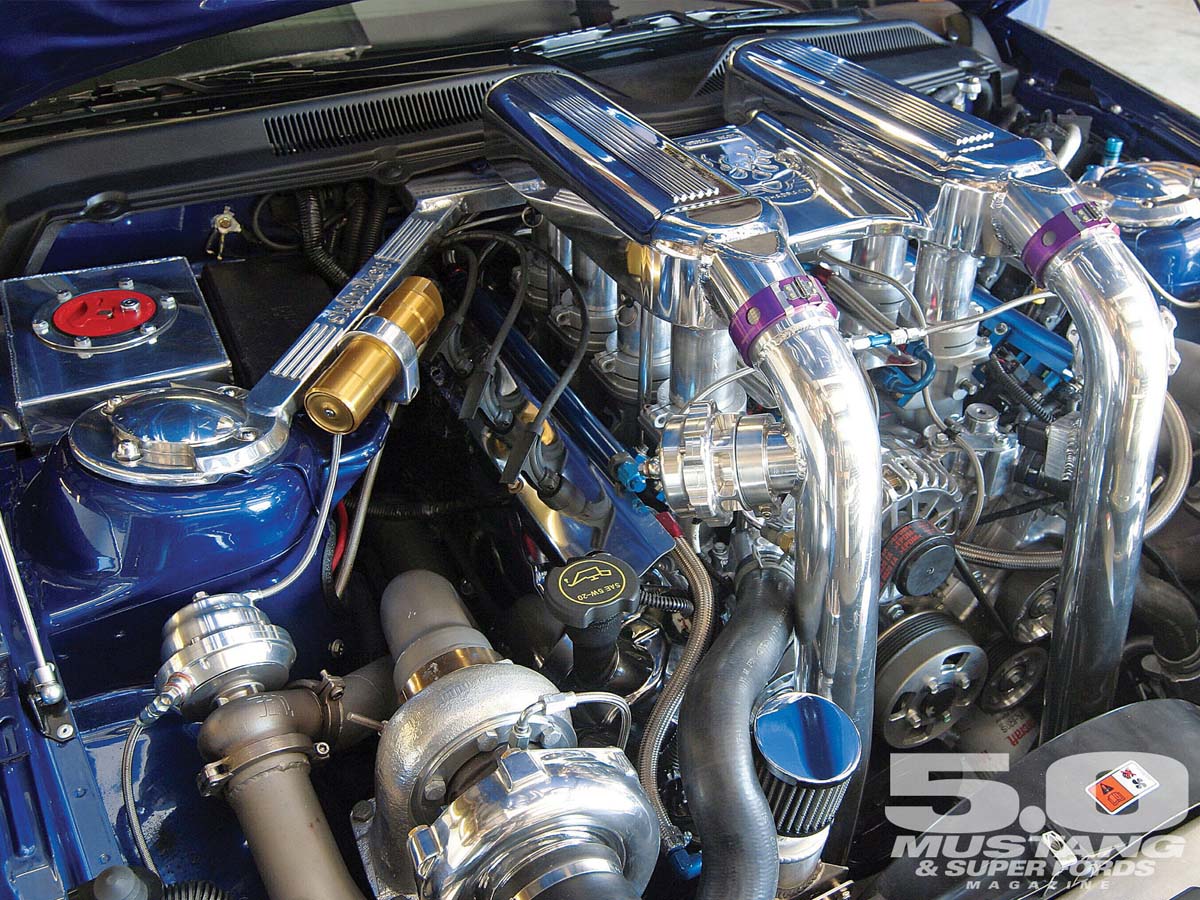 | Muscle Car的改法都是竭盡所能壓榨動力,像圖中這輛Mustang GT,Pure Power將原廠機械增壓廢除,在強化引擎腹內之後改以雙渦輪進行調校,創造出900hp最大馬力。 |