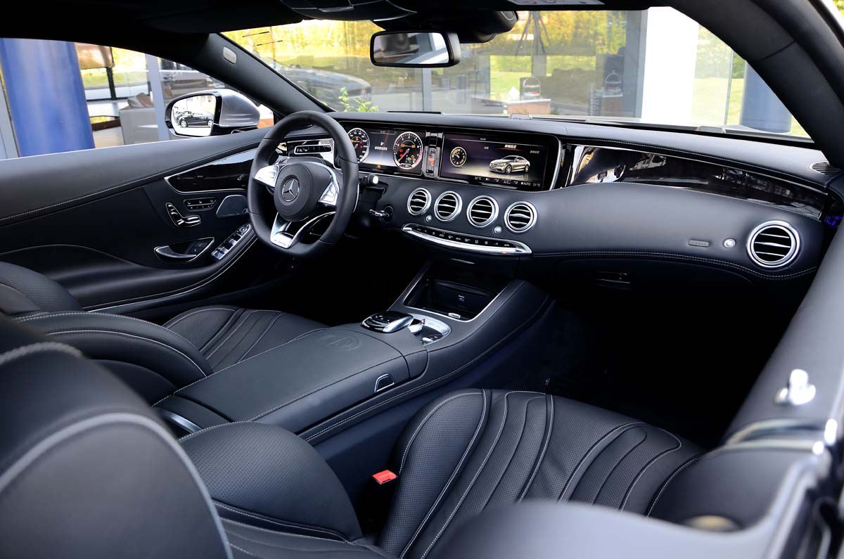| 車艙內部陳設與S-Class相似,三幅式跑車方向盤以及中扶手上的AMG廠徽則是特徵之一。 |