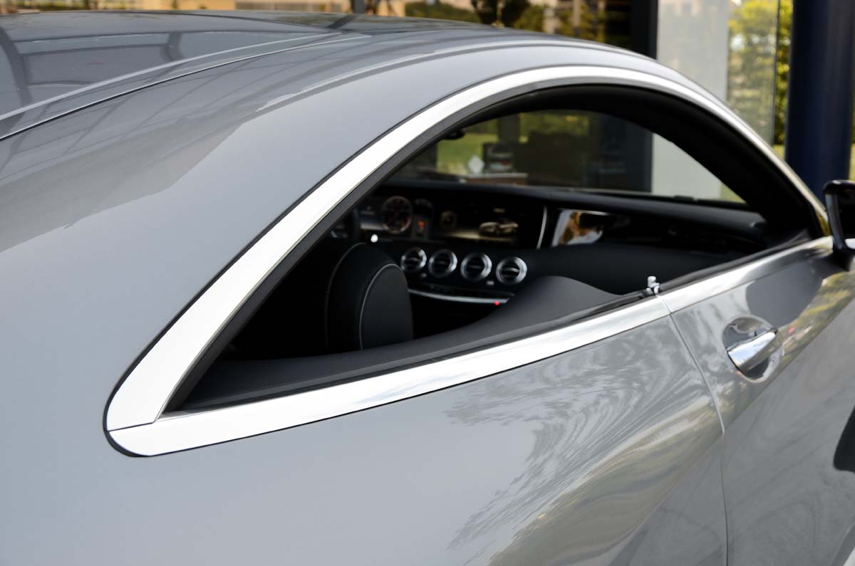 | 前後都可降下的側窗是M.Benz大型雙門跑車的特徵之一,降下車窗後車頂的線條也特別明顯。 |