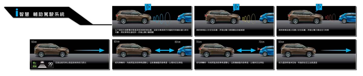 | 先進的i智慧駕駛系統結合了FCM主動智慧煞車輔助及ACC主動車距控制巡航。 |